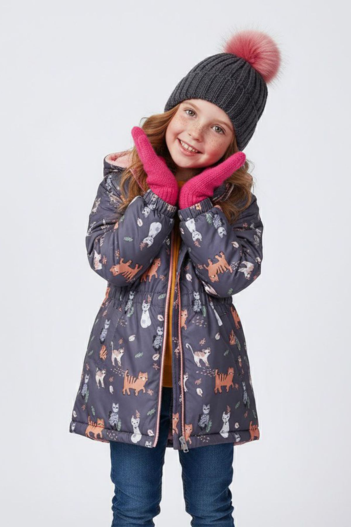 Sevimli kedicik baskılarıyla minik prenseslere şirin bir tarz kazandıran bu mont, welsoft iç astarı sayesinde yumuşacık bir sıcaklık sunar. Soğuk ve serin havalarda hem koruyucu hem de rahat bir seçimdir. 🐱💖🧥