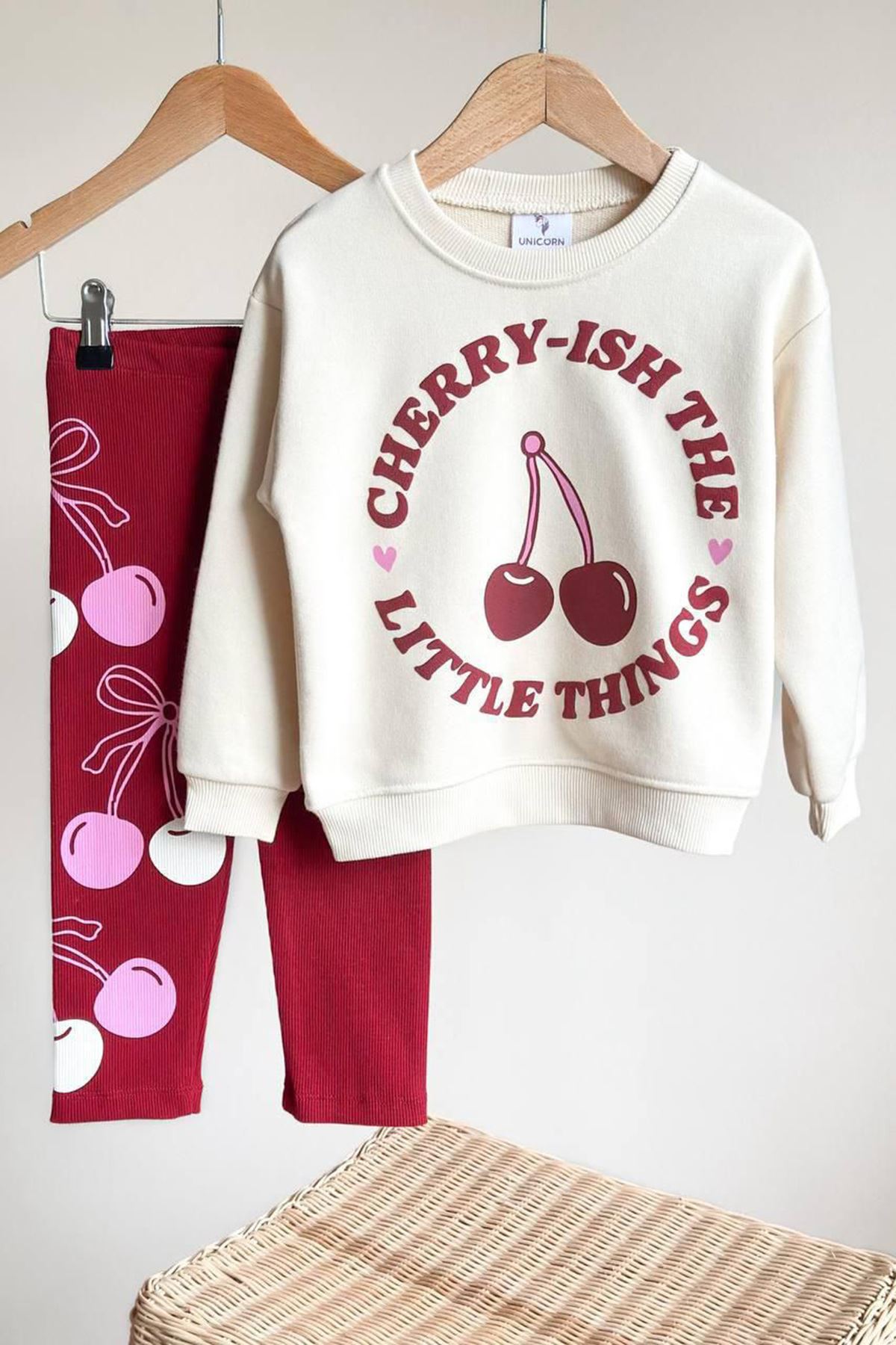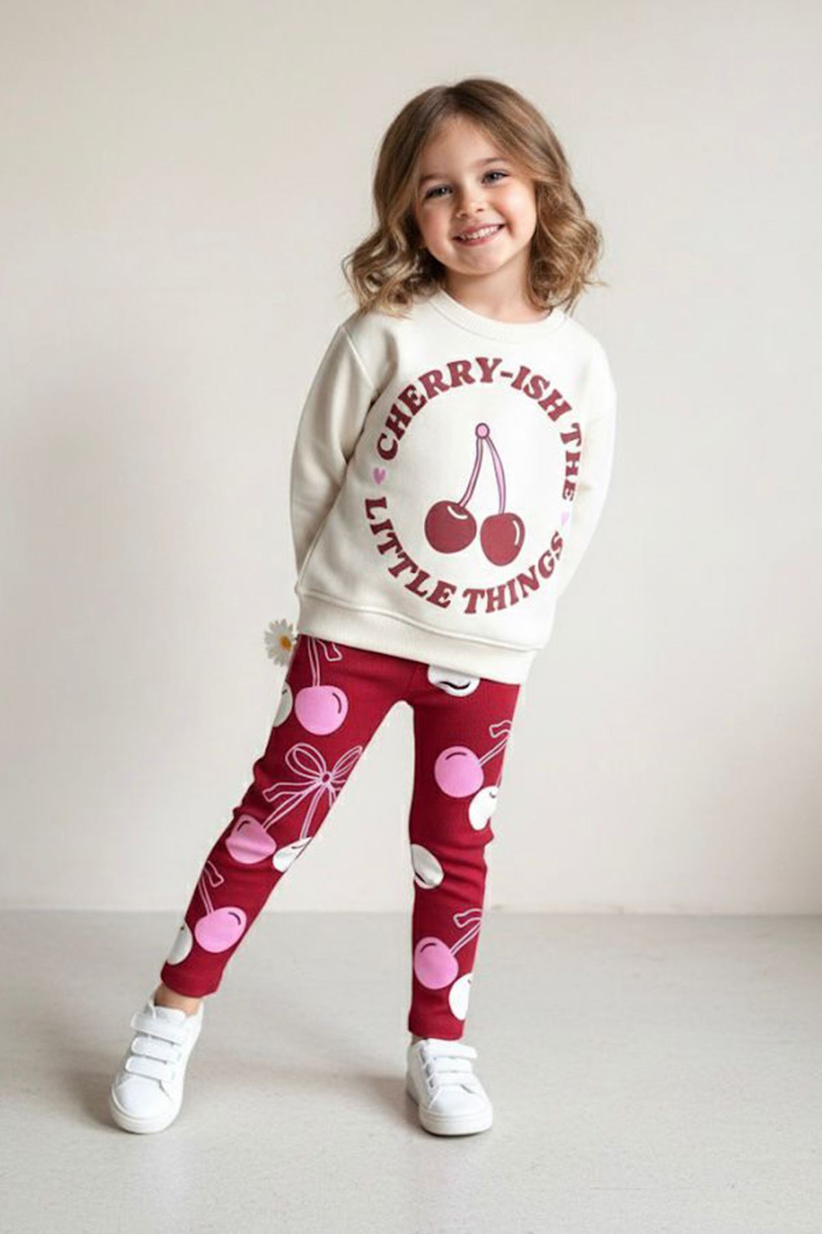 🍒 Miniğimin Cicileri Kiraz Baskılı Kız Çocuk 2’li Taytlı Takım