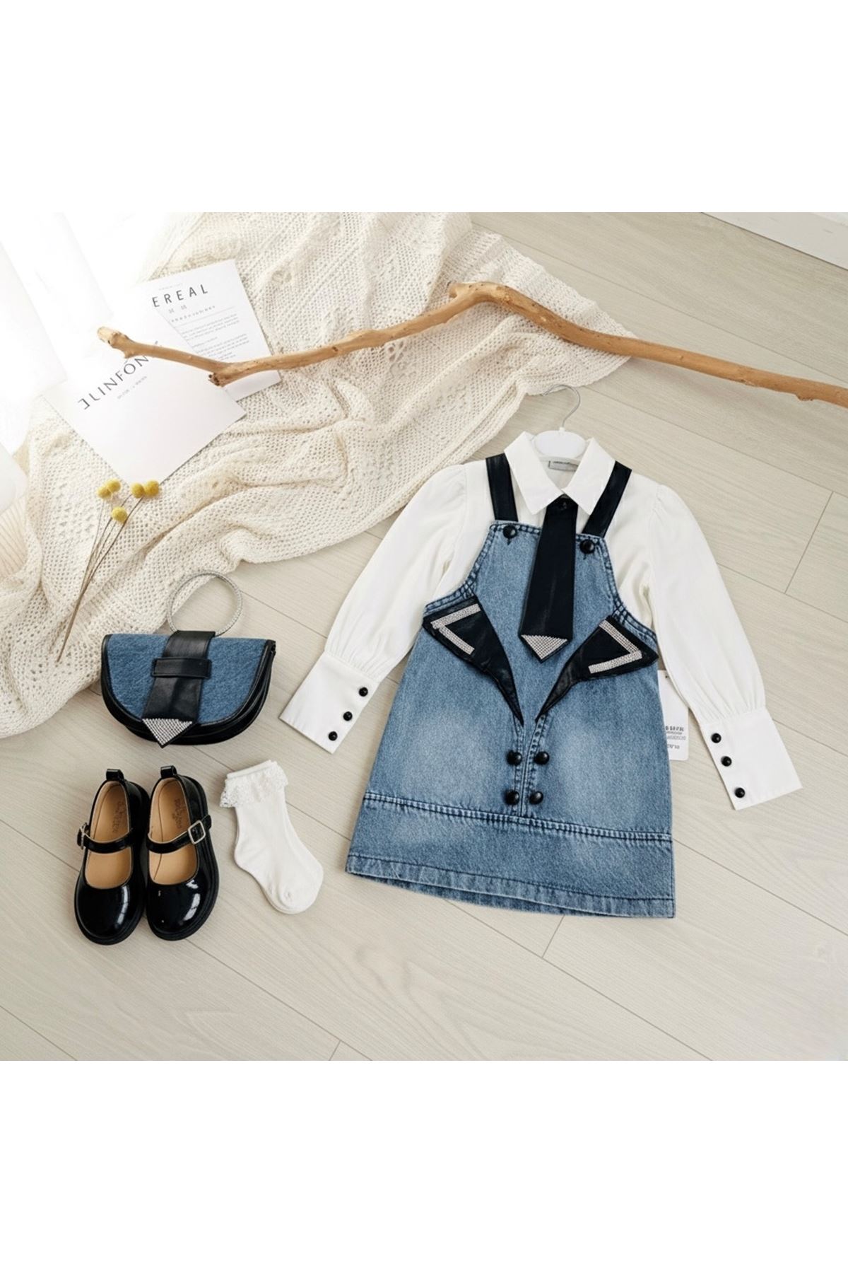 Miniğimin Cicileri Kravat ve Çanta Aksesuarlı Kız Çocuk Kotlu Jile Takım, modern ve şık tasarımıyla kız çocuklarının stiline zarif bir dokunuş yapar. Özel günlerde veya günlük kullanımda tercih edilebilecek bu takım, kaliteli detaylarıyla fark yaratır.