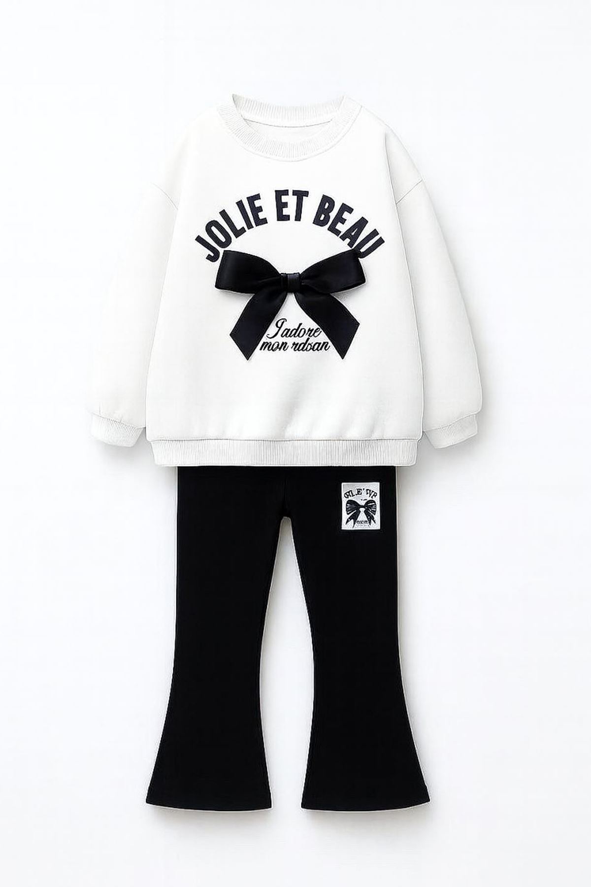 ✨ Ürün Özellikleri: ✔️ Gösterişli kurdele detayı ile dikkat çeken şık tasarım. ✔️ Üstte Jolie baskı yazı deseni, modern ve eğlenceli bir stil sunar. ✔️ Rahat kesim tayt, çocukların gün boyu özgürce hareket etmesini sağlar. ✔️ Yumuşak kumaşı ile cilt dostu ve konforlu kullanım imkânı sunar. ✔️ Günlük giyim, okul ve özel günler için ideal bir seçimdir.