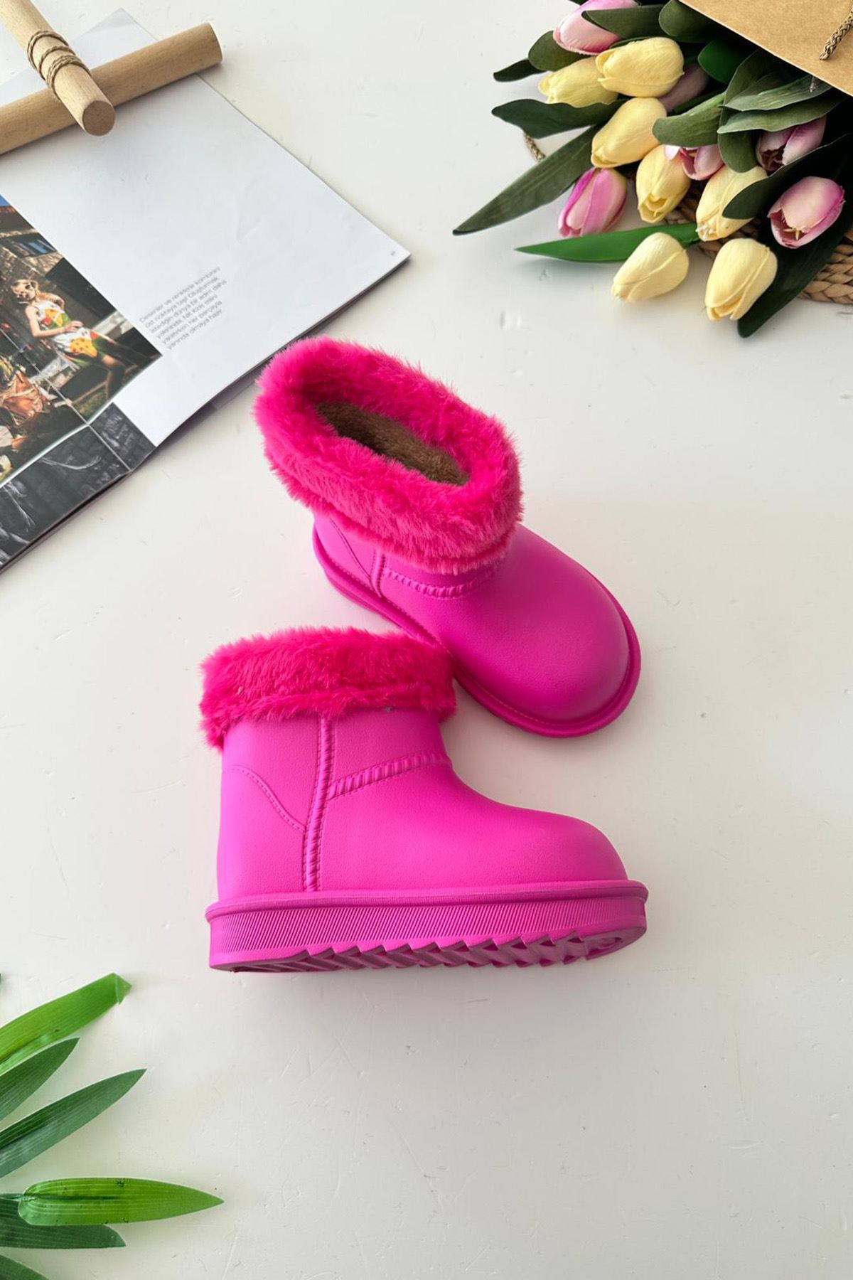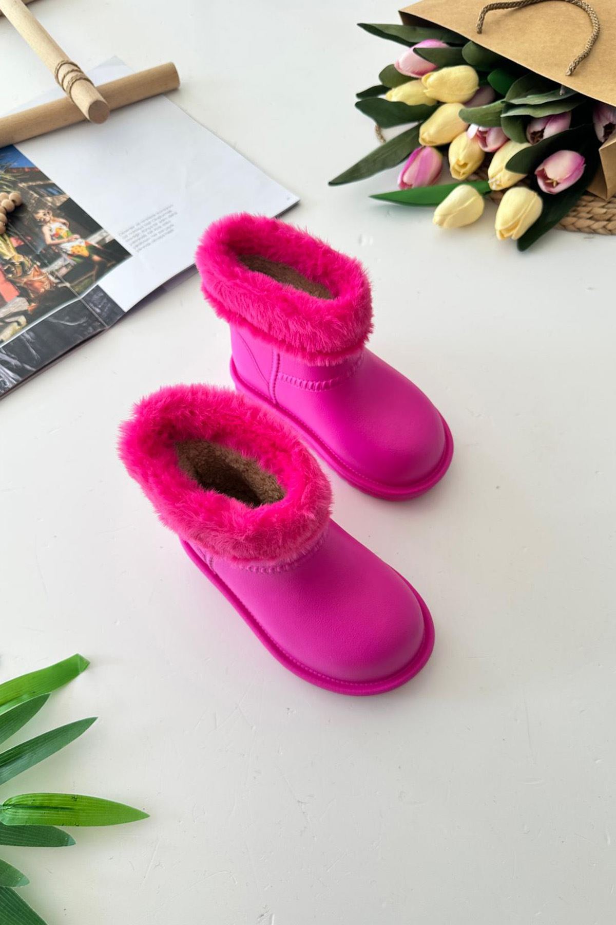 Miniğimin Cicileri Kürklü Renkli Yağmur Botu - Fuşya
