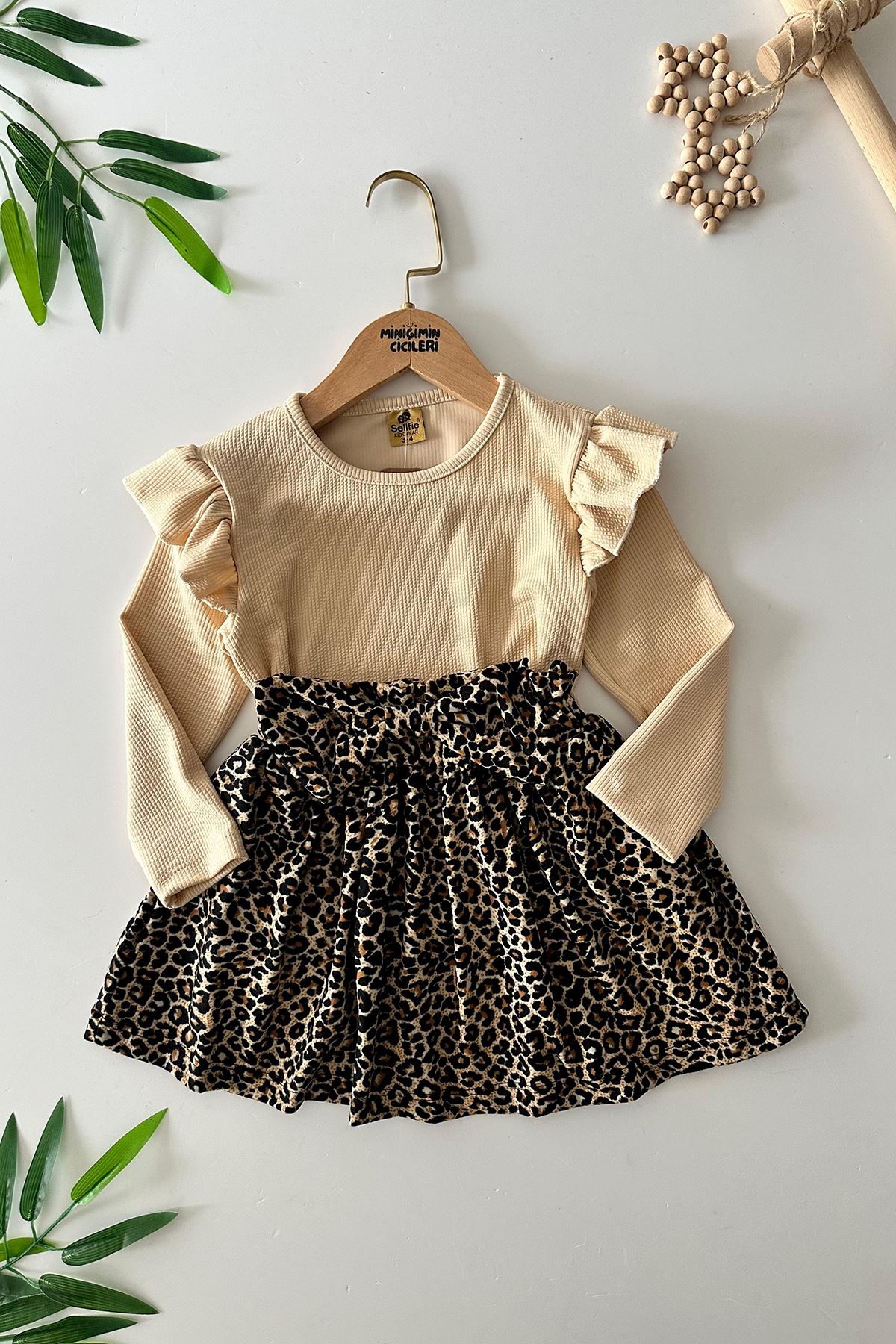 Leopar Fiyonk Detaylı Etekli Kız Çocuk 2'li Takım