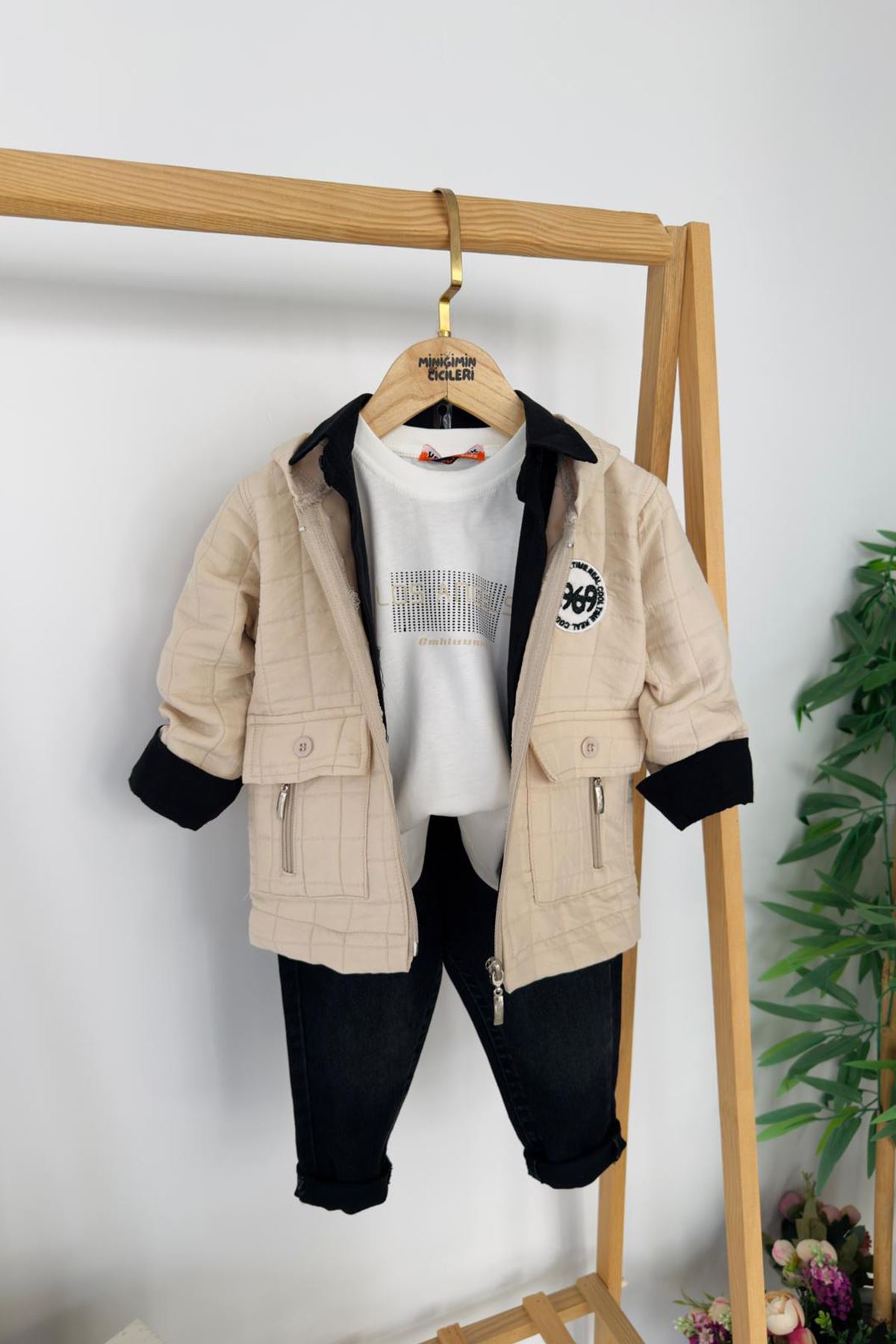 Miniğimin Cicileri Loş Angel Kapitone Hırkalı 4 lü Erkek Çocuk Takım - Bej