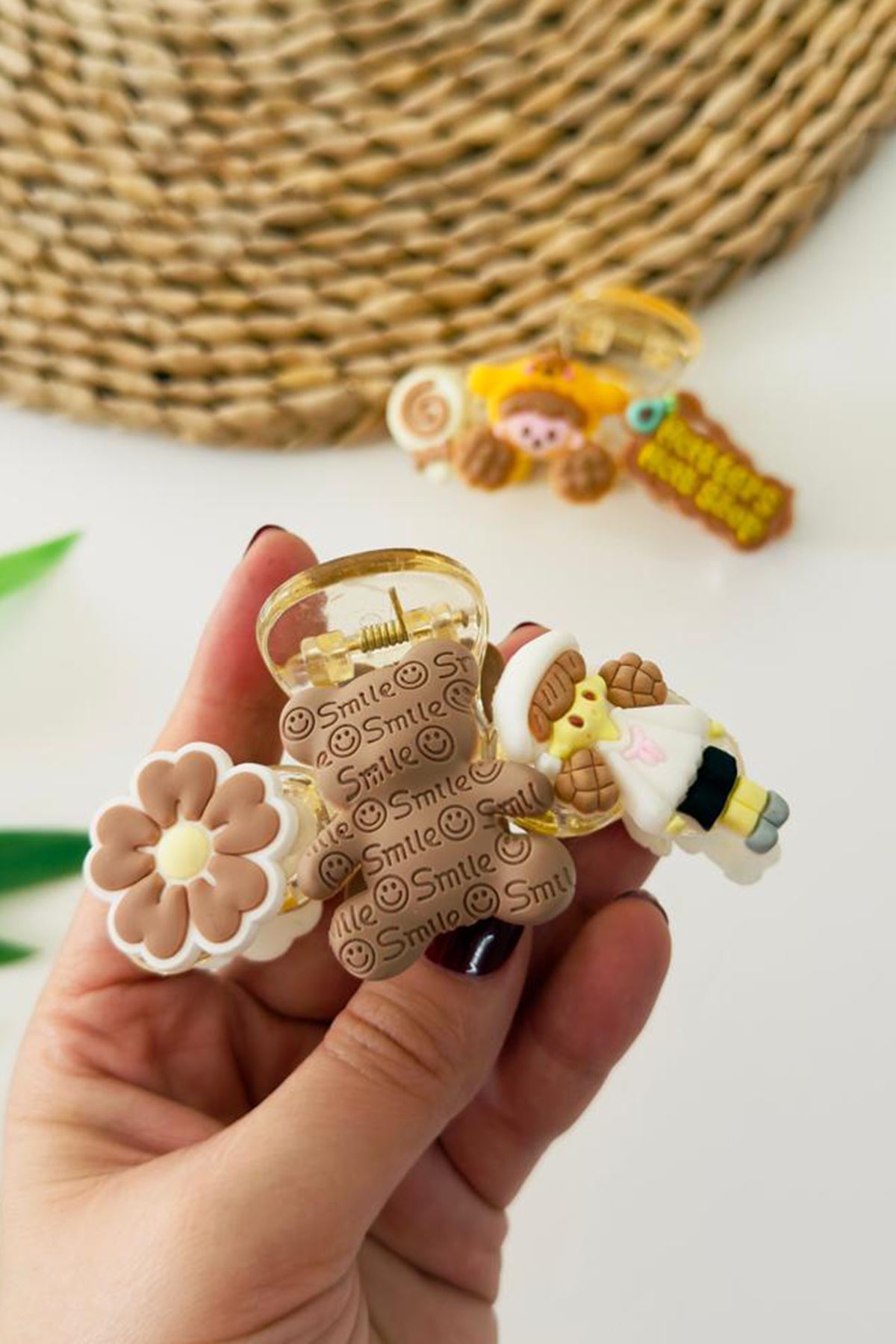 🔹 Ürün Özellikleri: – Güçlü tutuş sağlayan mandal mekanizması – Üzerinde karakter, çiçek ve "Smile" yazılı şık detaylar – Saçı sıkıca kavrar, kayma yapmaz – Günlük kullanım için ideal, dikkat çekici bir aksesuar