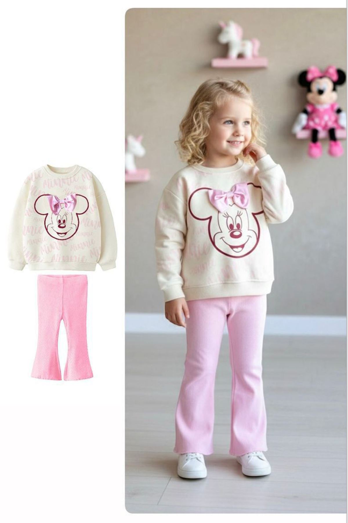 ✨ Ürün Özellikleri: 👕 Uzun kollu sweatshirt, ön kısmındaki büyük baskı ve fiyonk detayıyla tatlı bir stil sunar. 👖 Geniş paça tayt, esnek yapısıyla konforlu hareket imkanı sağlar. 🪡 3 ip şardonsuz kumaş, terletmeyen yapısıyla dört mevsim kullanım için uygundur. 📌 Günlük kullanımda rahatlıkla tercih edilebilecek şık bir kombin oluşturur. ✔️ Parçalar ayrı ayrı kullanılabilir, farklı kıyafetlerle kolayca uyum sağlar.