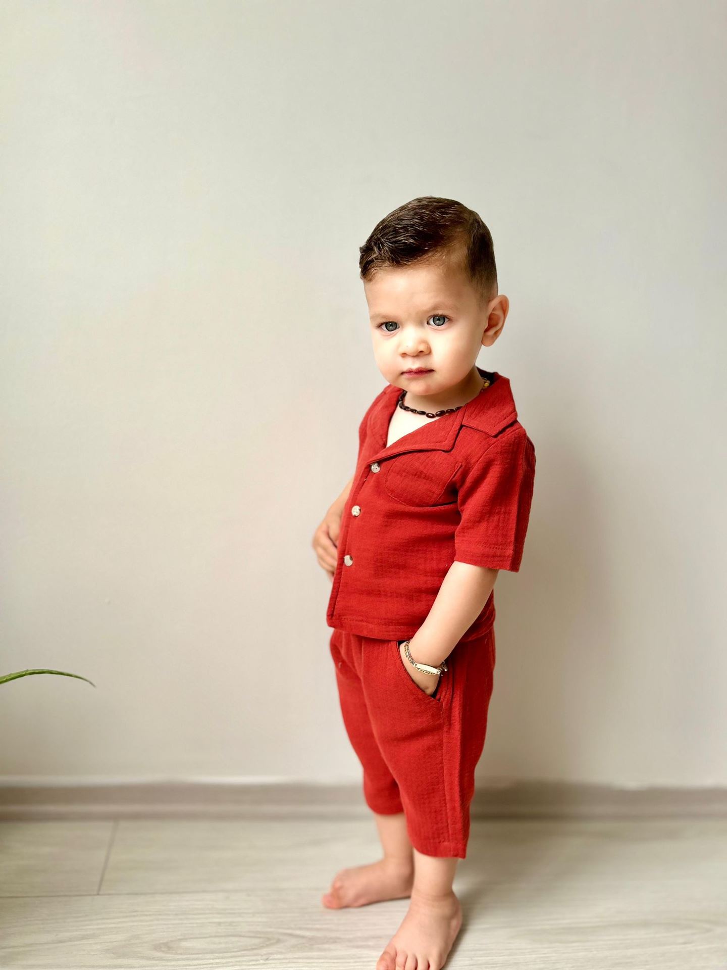 Graffiti baskılı üst, şehir sanatının ruhunu yansıtırken, rahat turuncu şort yaz aylarında serinlik ve konfor sağlar. Bu kombin, enerjik ve stil sahibi çocuklar için ideal bir seçimdir.