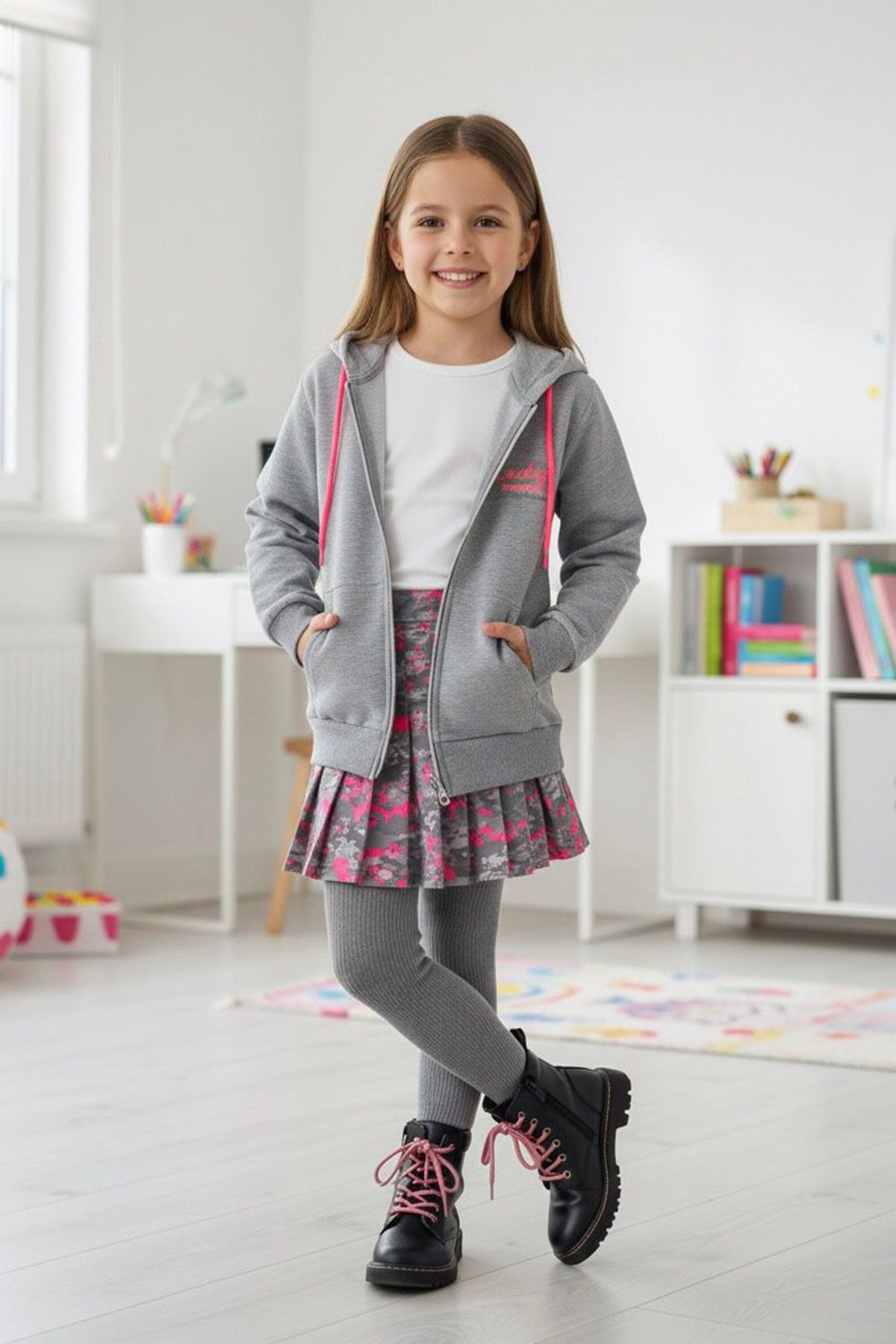 Sportif şıklığı neon dokunuşlarla birleştiren bu kapüşonlu hırka, minik hanımların günlük kombinlerine enerji katıyor. Rahat kesimi ve yumuşak dokusuyla hem okulda hem dışarıda ideal kullanım sunar.