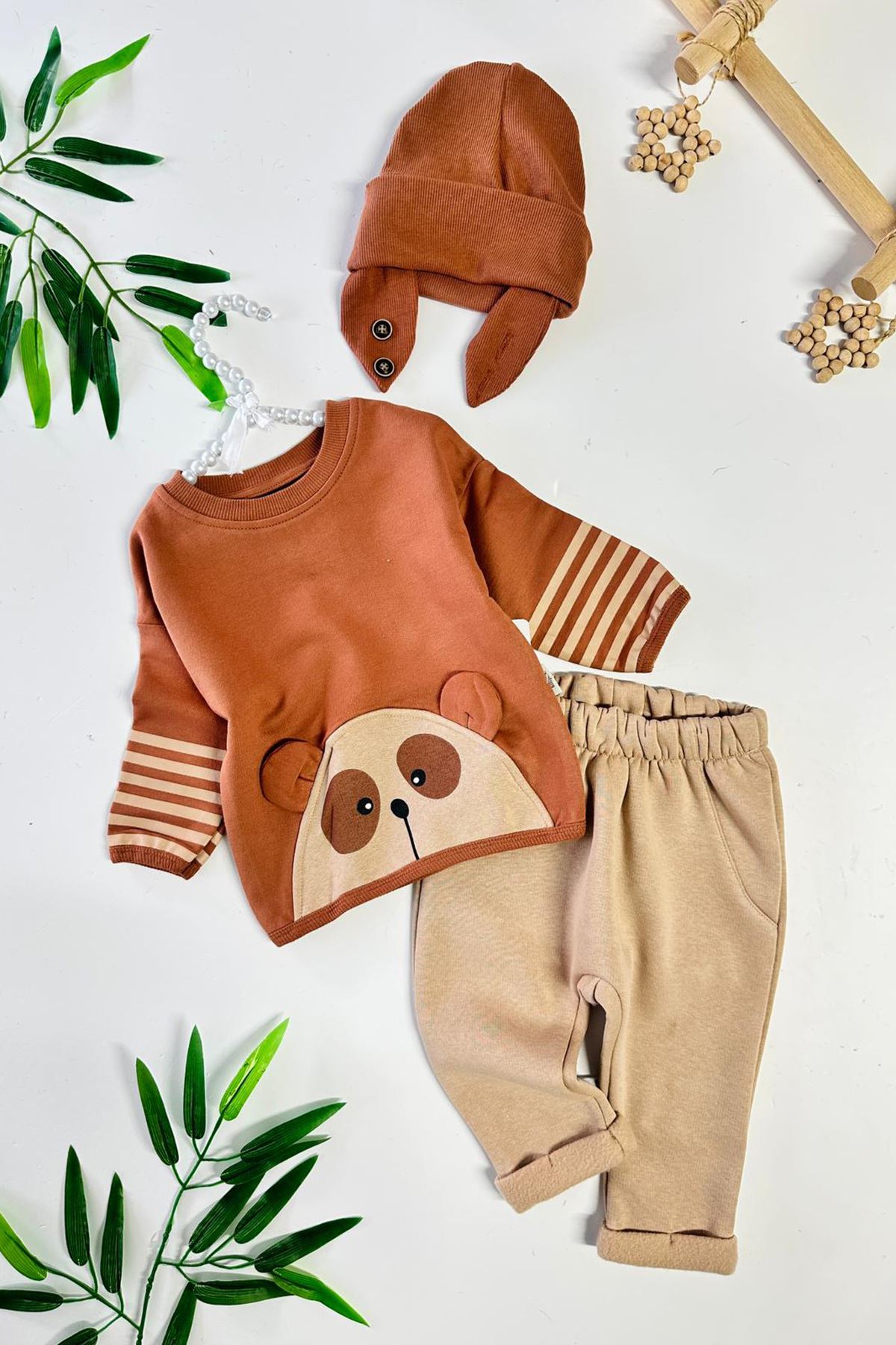 Miniğimin Cicileri Panda Baskı Detaylı Erkek Bebek 2 Li Takım - Kahve