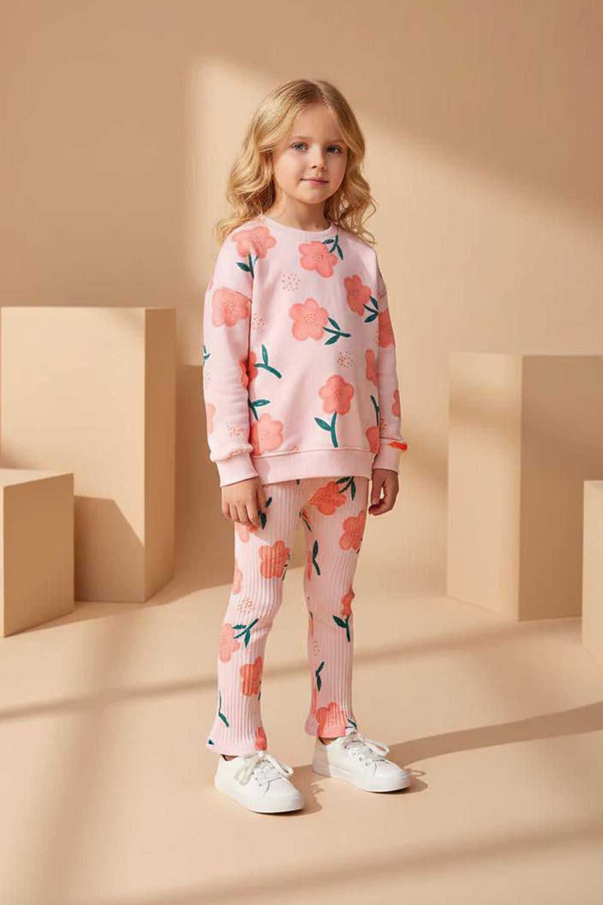 👖 Desenli tayt: Esnek yapısıyla çocuğun rahatça hareket etmesine olanak tanır. Takımla bütünlük sağlayan baskı detayları içerir.