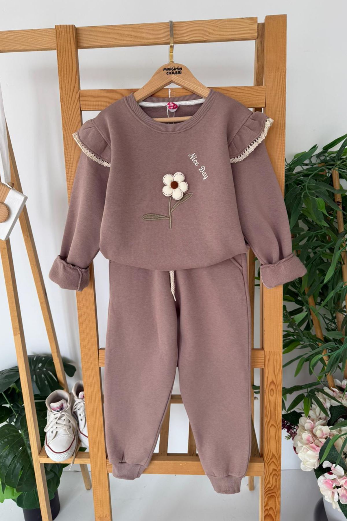 ✨ Ürün Özellikleri: 👕 Üst kısmı, papatya nakışı ve zarif fisto kol detayları ile tatlı bir görünüm kazandırır. 👖 Alt kısmı, beli lastikli ve bağcıklı tasarımıyla çocuğunuzun rahat hareket etmesini sağlar. 🧵 3 ip şardonlu kumaş, soğuk havalarda ekstra sıcak tutar ve yumuşacık konfor sunar. 🎀 Günlük kullanımda veya özel günlerde şirin kombinler için idealdir.