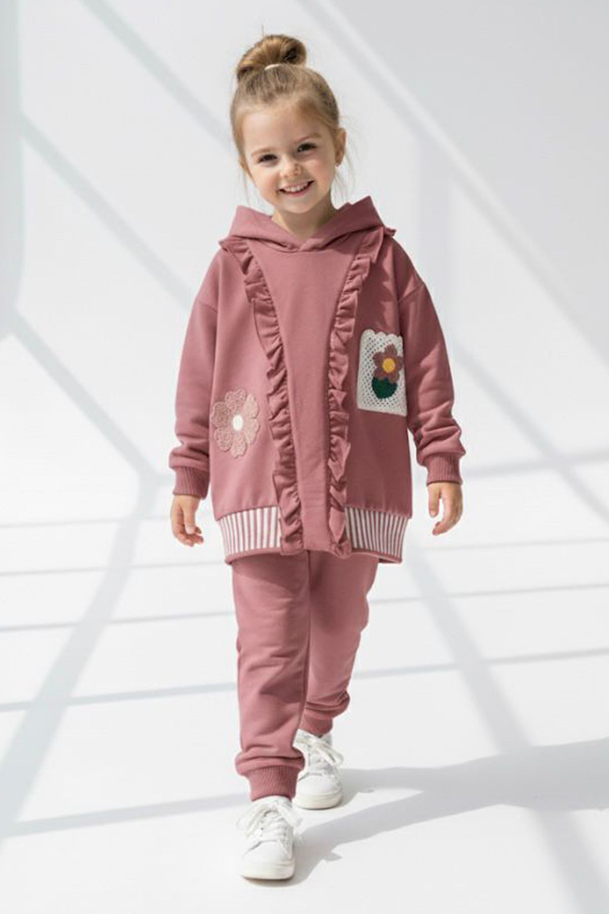 Miniğimin Cicileri Papatya Örgü Detaylı Kız Çocuk Kapüşonlu Takım - Gül Kurusu