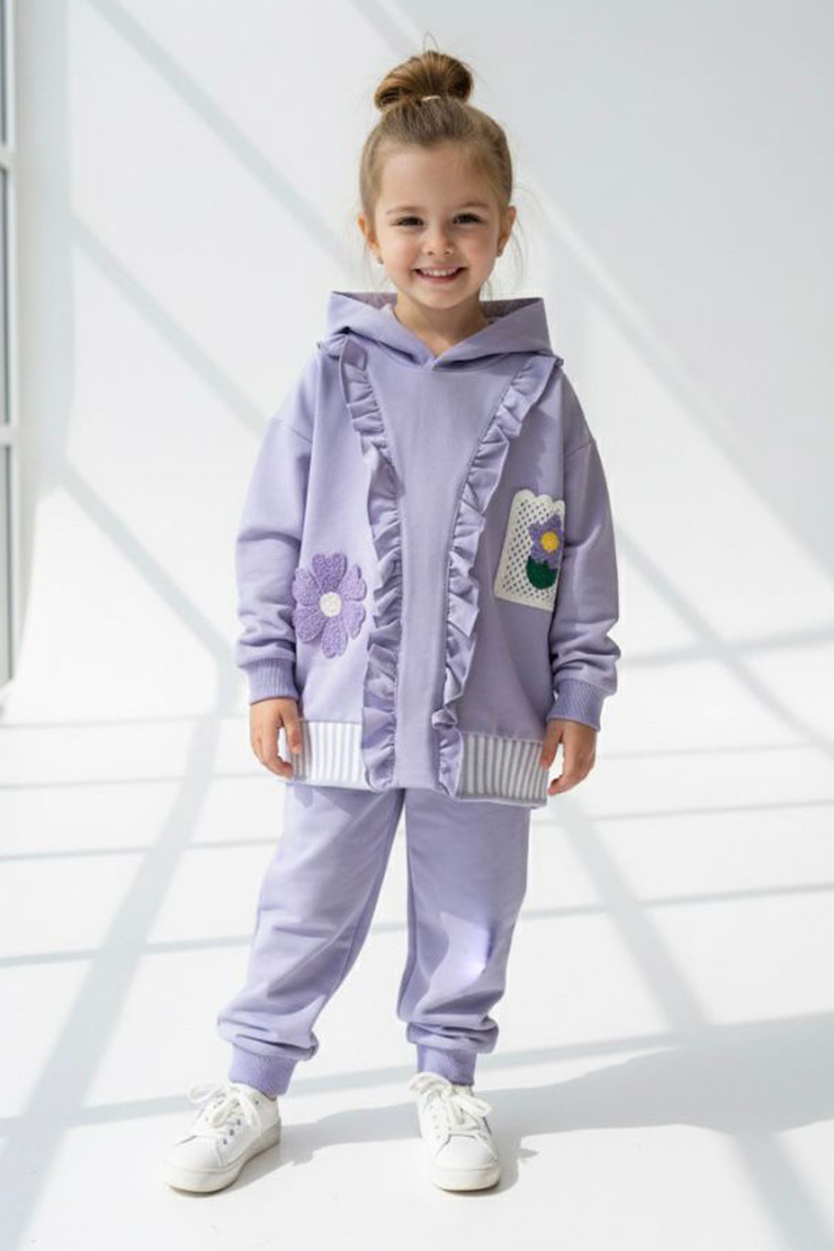 İlkbahar ve sonbahar mevsimlerine uygun, hafif ve konforlu bu 2 ip şardonsuz kapüşonlu takım; hareketli günlerde miniklerin rahatlığını ön planda tutarken sevimli detaylarla stilini tamamlıyor. Papatya temalı örgü aplikeleri ve fırfır detayları ile fark yaratan bir tasarım sunuyor.