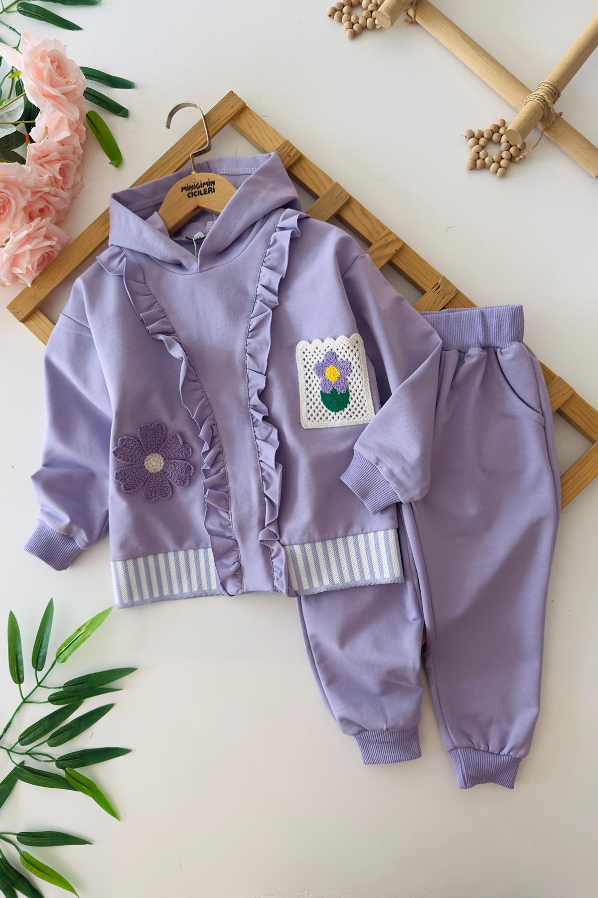 🔖 Miniğimin Cicileri Papatya Örgü Detaylı Kız Çocuk Kapüşonlu Takım