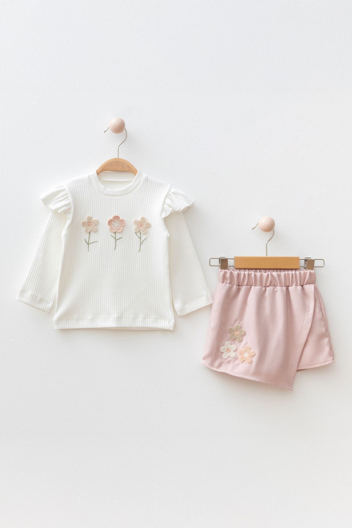 🌸 Miniğimin Cicileri Papatya Örgü Detaylı Kız Çocuk Şort Etekli Takım