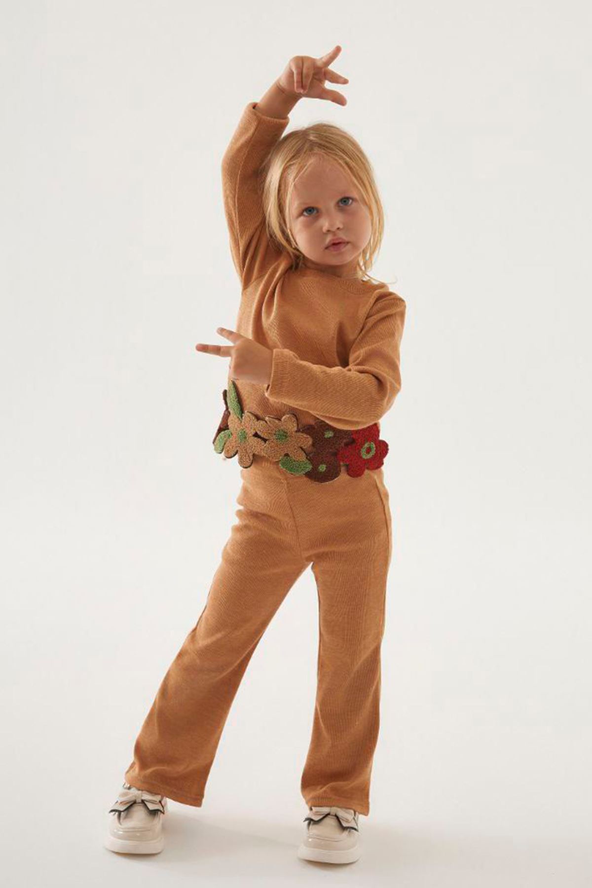 Panç çiçek işlemeleriyle şık, örme dokusuyla konforlu bu takım, kız çocuklarının günlük kombinlerinde hem rahat hem zarif görünmelerini sağlar. Şirin, kaliteli ve kullanışlı bir seçim! 🌸💫