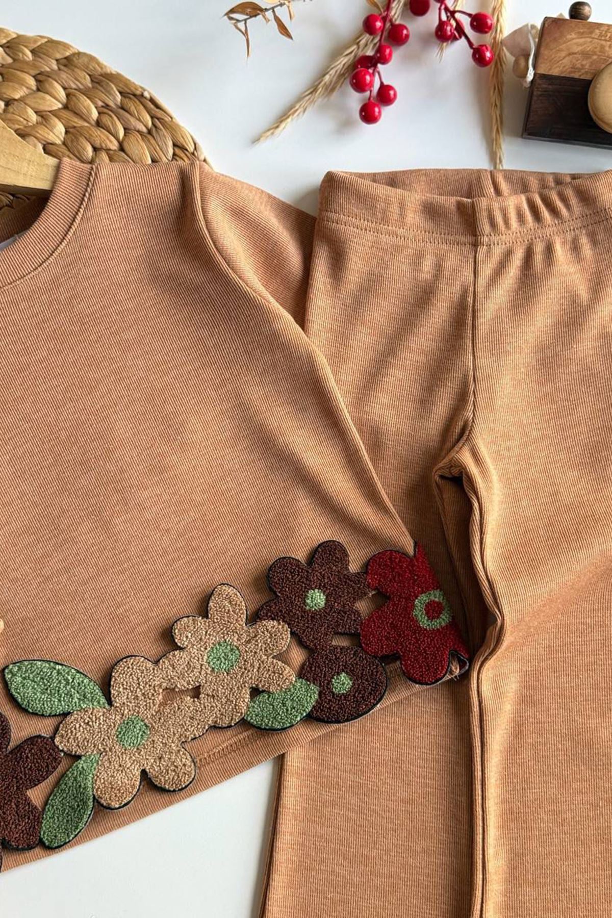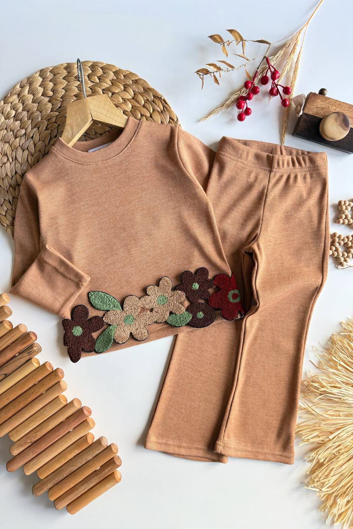 Miniğimin Cicileri Papatya Panç İşleme Detaylı Kız Çocuk 2 li Takım - Kahverengi
