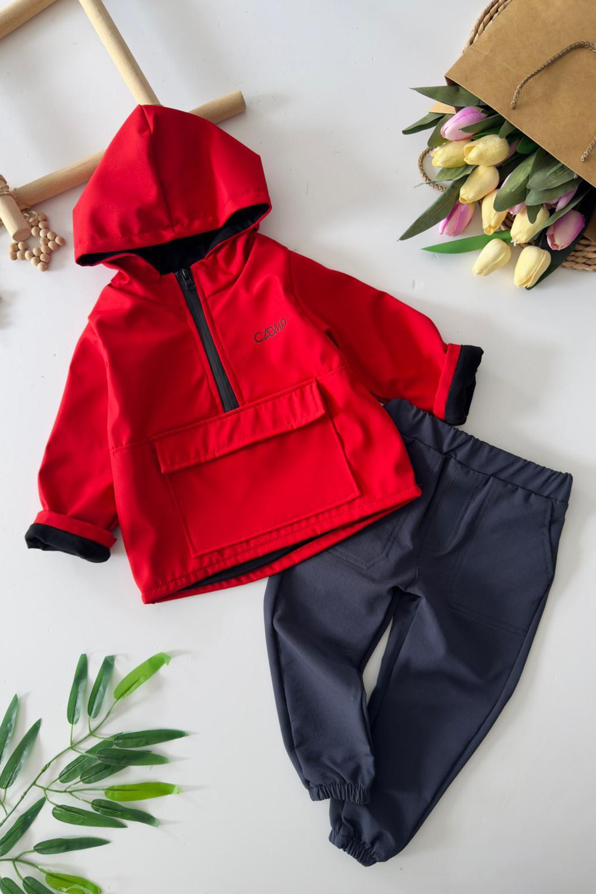 Miniğimin Cicileri Paraşüt Kapüşonlu Erkek Çocuk 2 li Takım - Kırmızı