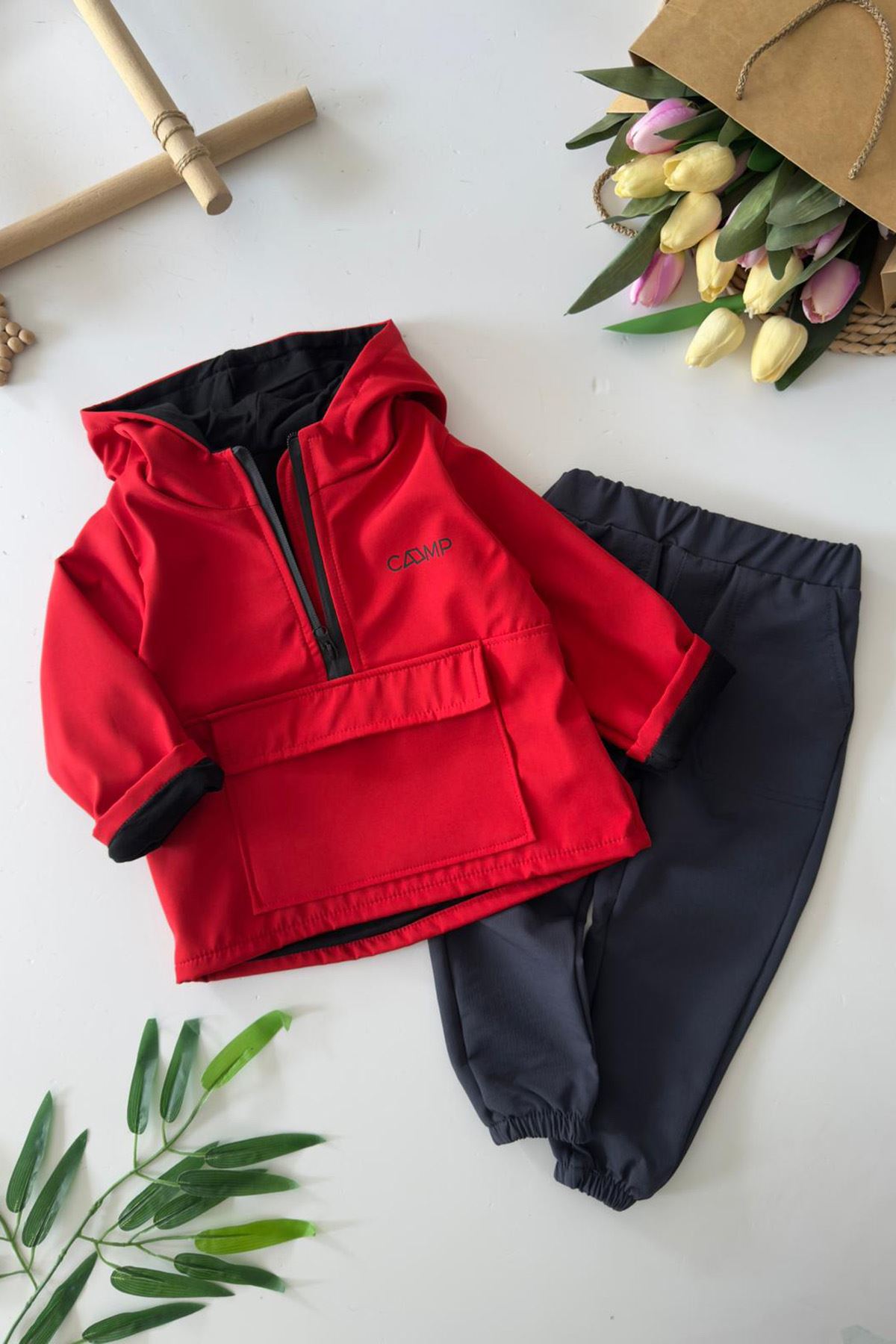 Hem rahat hem dayanıklı! 🌟 Bu paraşüt kumaş detaylı kapüşonlu takım, aktif minikler için tasarlandı. Spor şıklığıyla öne çıkan bu kombin, dış giyimde konfor ve tarzı bir arada sunar.