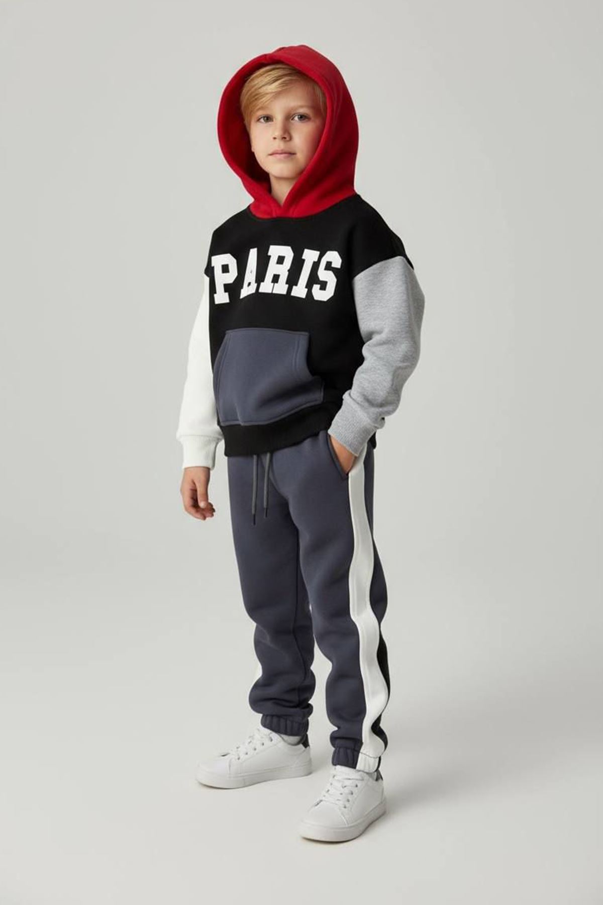 – “PARIS” baskılı kapüşonlu sweatshirt