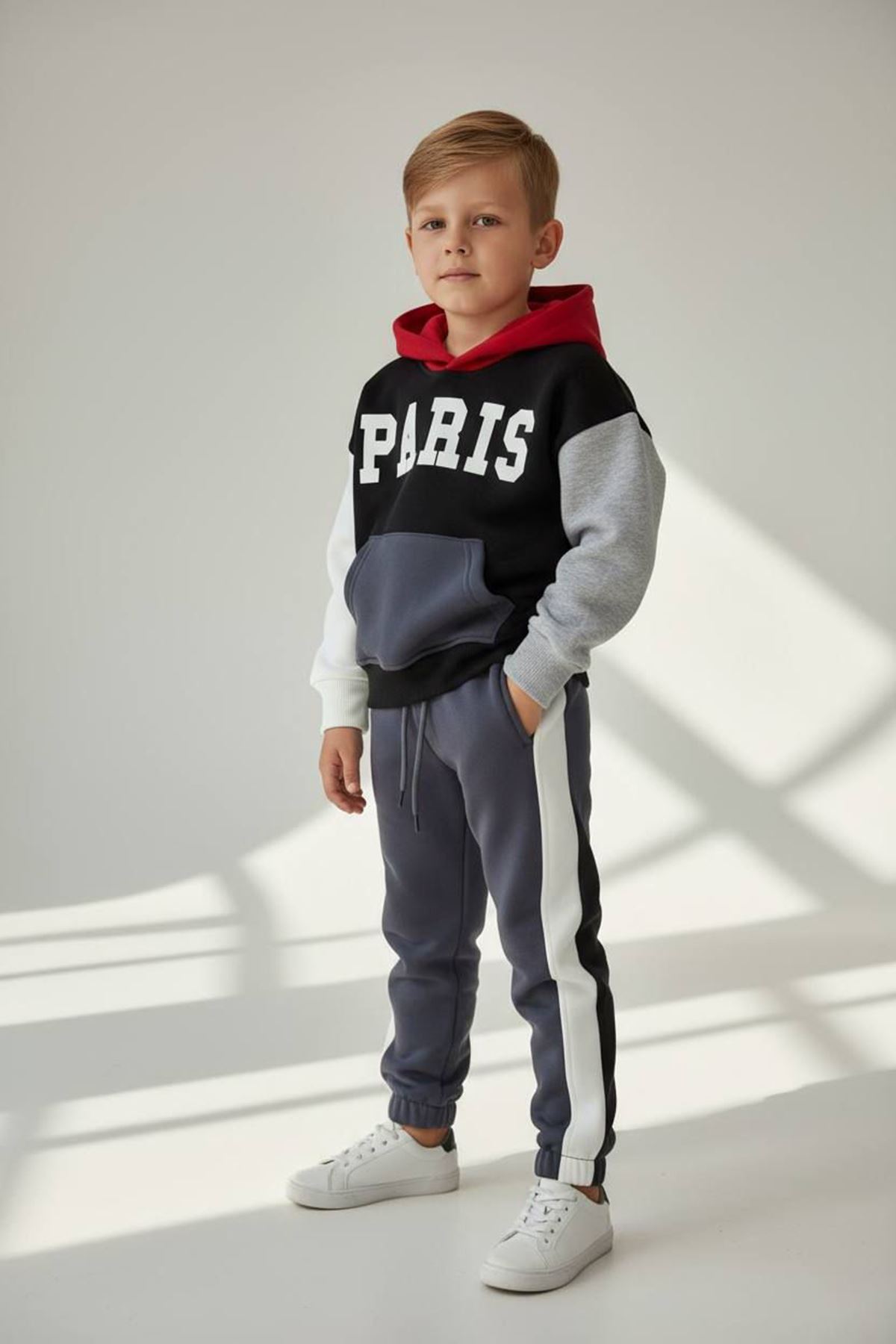 🗼 Miniğimin Cicileri Paris Baskılı Kapüşonlu Kışlık Erkek Çocuk Takım