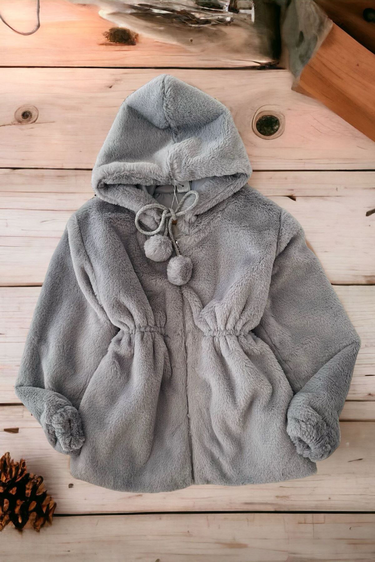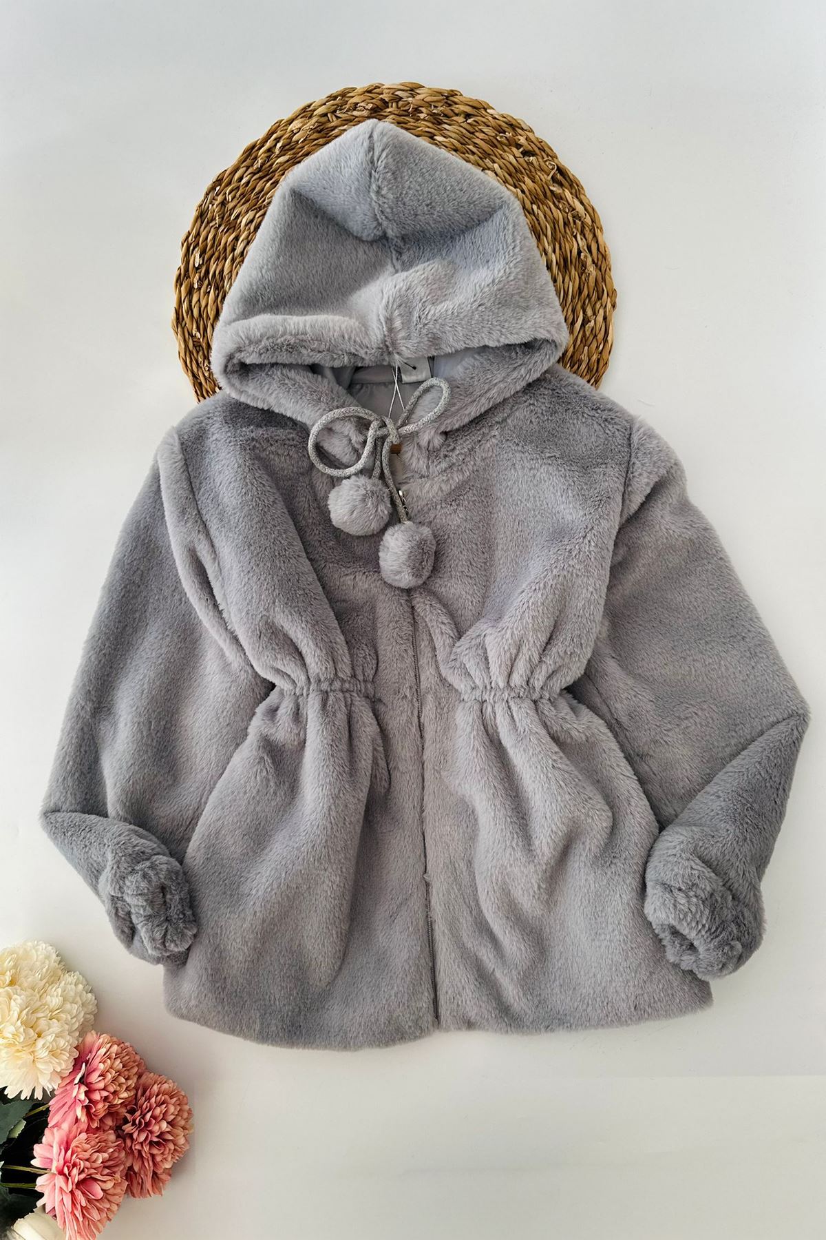Miniğimin Cicileri Pelüş Kız Çocuk Kapüşonlu Kız Çocuk Mont - Duman