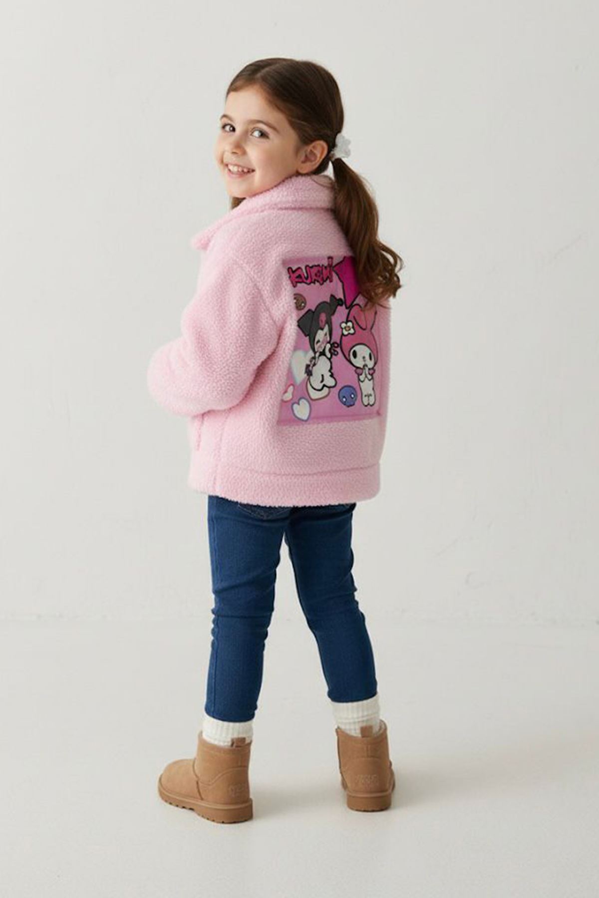 Yumuşacık peluş dokusu ve arkadaki sevimli karakter baskısıyla miniklerin favorisi olacak bu hırka, kış aylarında sıcak kalmanın en tatlı yolu! 💖❄️