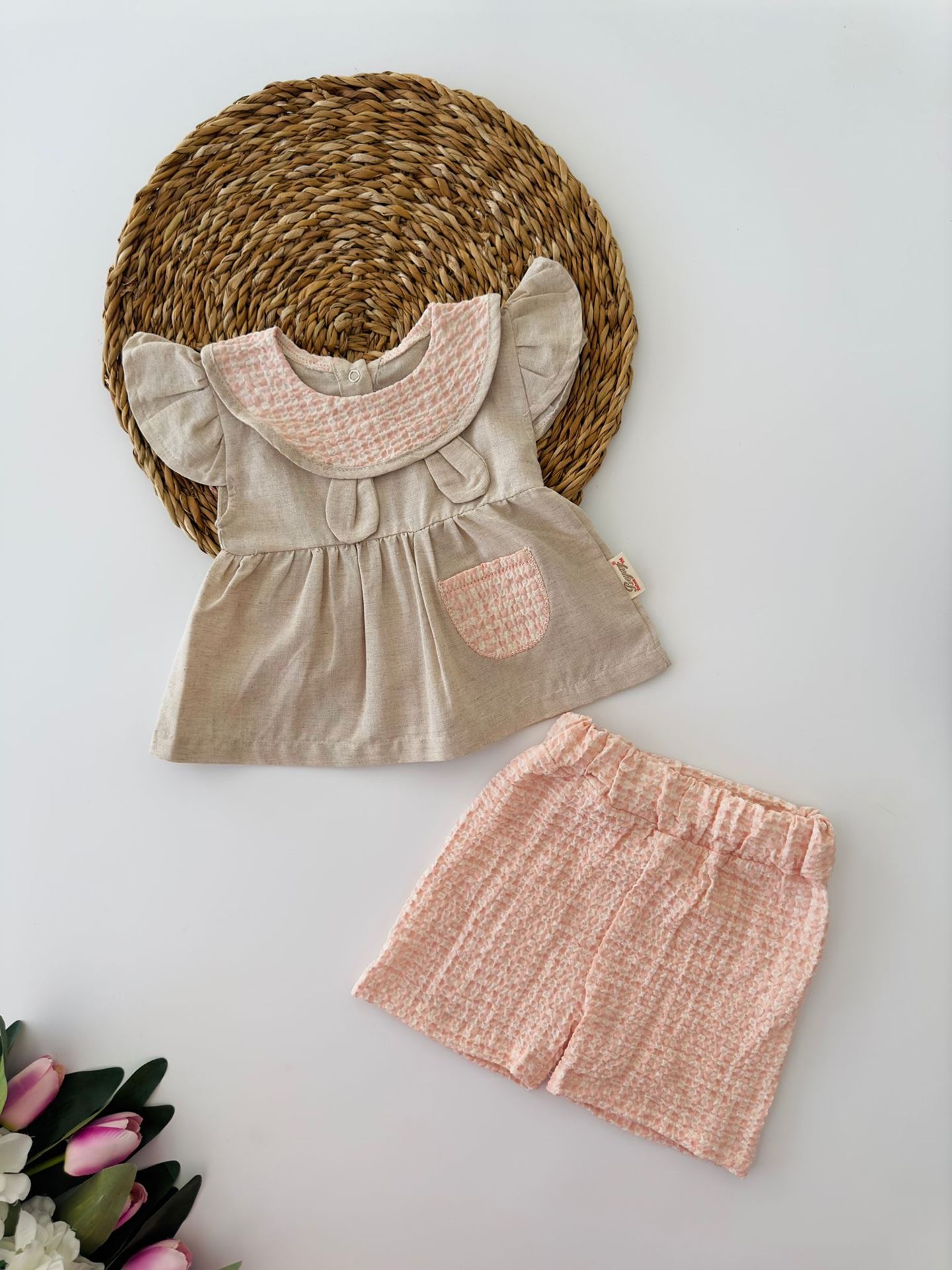 Açıklama: Miniğimin Cicileri koleksiyonundan gelen bu sevimli pötikare şortlu 2'li takım, bebekleriniz için ideal bir seçenektir. Üst parça, pötikare detaylarıyla süslenmiş, kısa kollu şirin bir bluzdur. Yumuşak ve nefes alabilen kumaşı, bebeklerinizin gün boyu rahat etmesini sağlar.