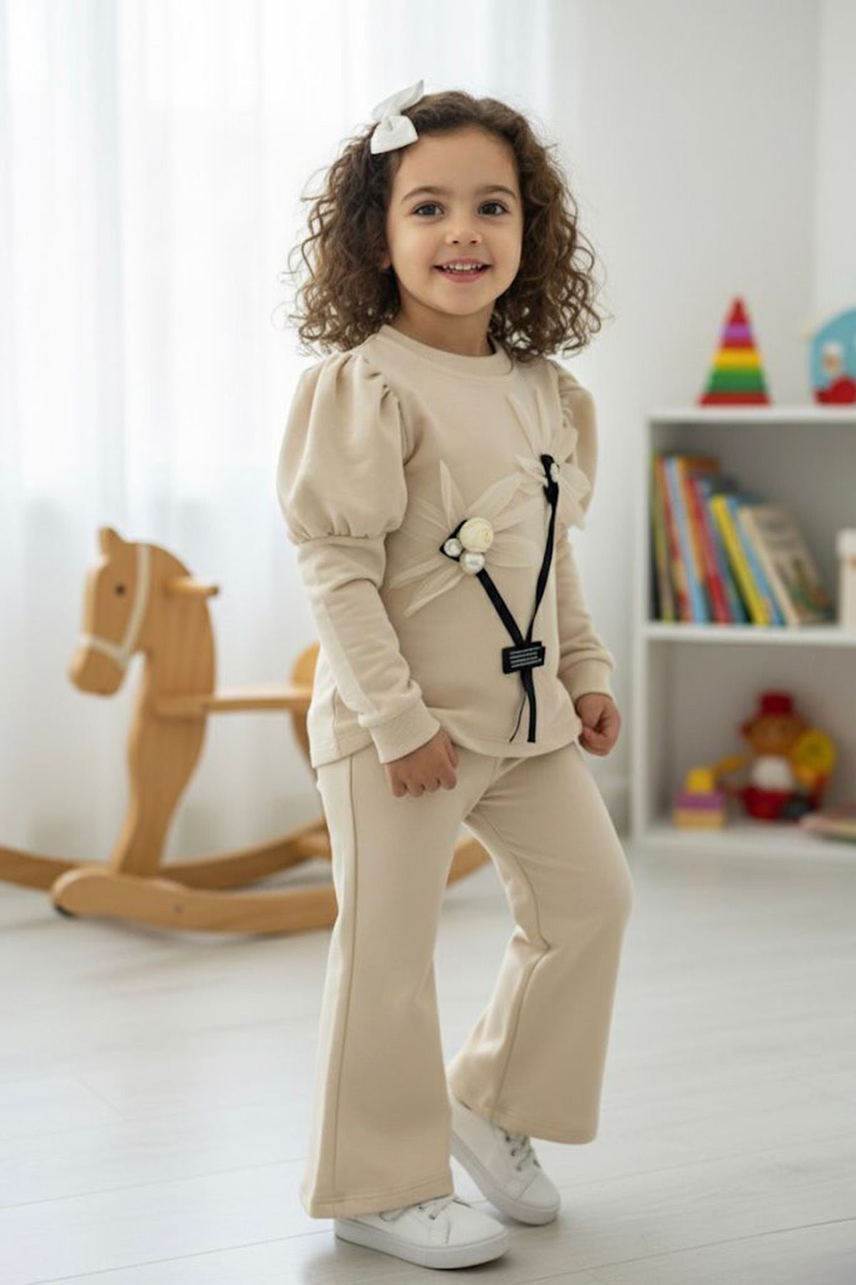 Zarif çiçek detayları ve prenses kol tasarımıyla minik hanımların gardırobuna şıklık katacak harika bir kombin! 🌸✨