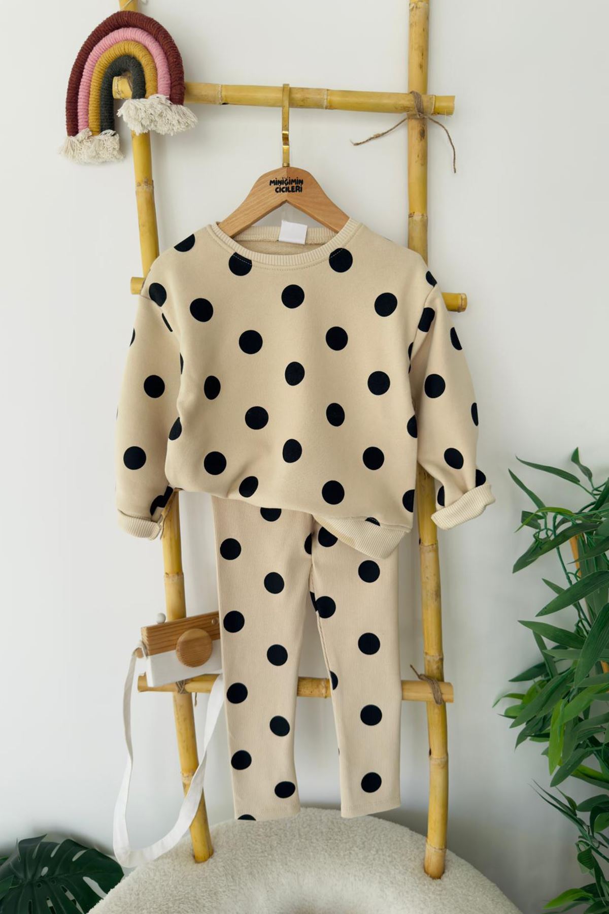 Miniğimin Cicileri Puantiye Dataylı Taytlı Kız Çocuk Takım - Bej