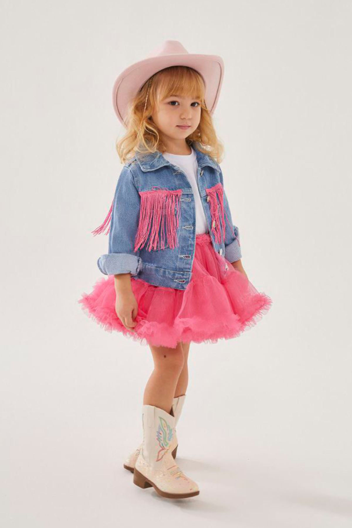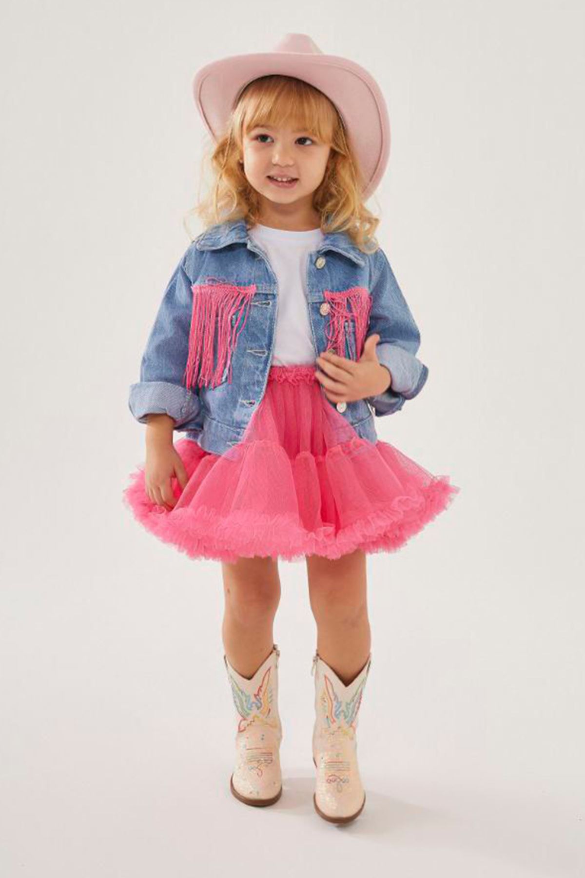 ✨ Ürün Özellikleri: 🧥 Püskül detaylı kot ceket, dinamik ve modern bir stil oluşturur. 👗 Kat kat tütü etek, kabarık yapısıyla hacimli ve zarif bir duruş sağlar. 🧵 Yumuşak iç astar, çocuğunuzun cildine dosttur ve rahat hareket imkânı sunar. 🎀 2’li takım; kot ceket ve tütü etekten oluşur, kolay kombinlenebilir. 🌟 Günlük şıklıkta ya da özel günlerde rahatlıkla tercih edilebilir.