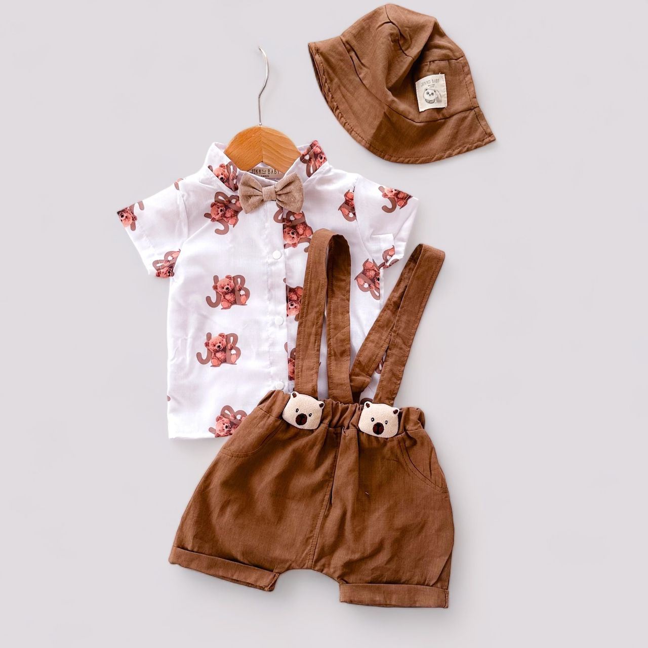 Miniğimin Cicileri Şapkalı Bear Desenli Şortlu Erkek Bebek 3'lü Takım