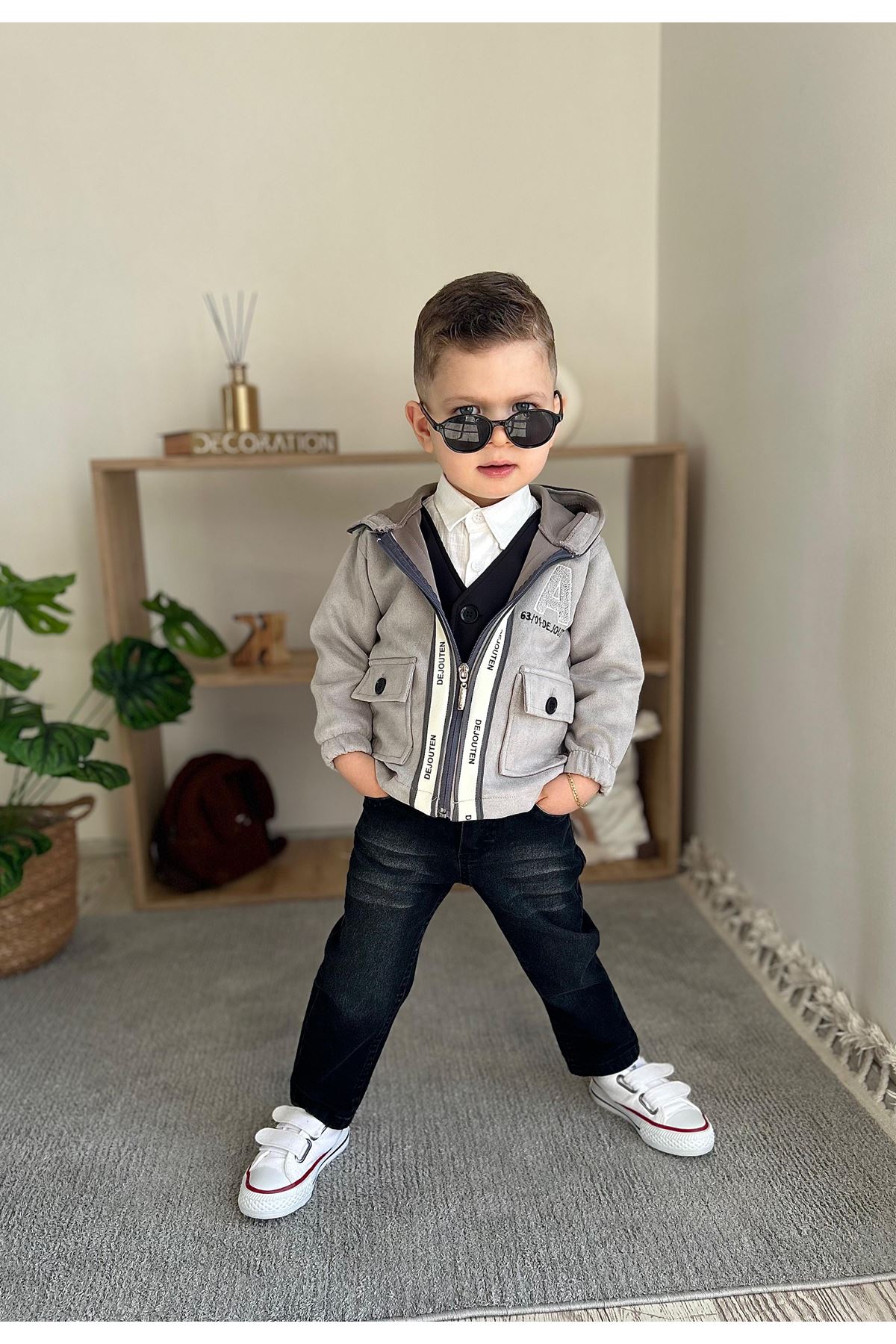 Miniğimin Cicileri Şerit Detaylı Cepkenli Erkek Çocuk 4'lü Takım
