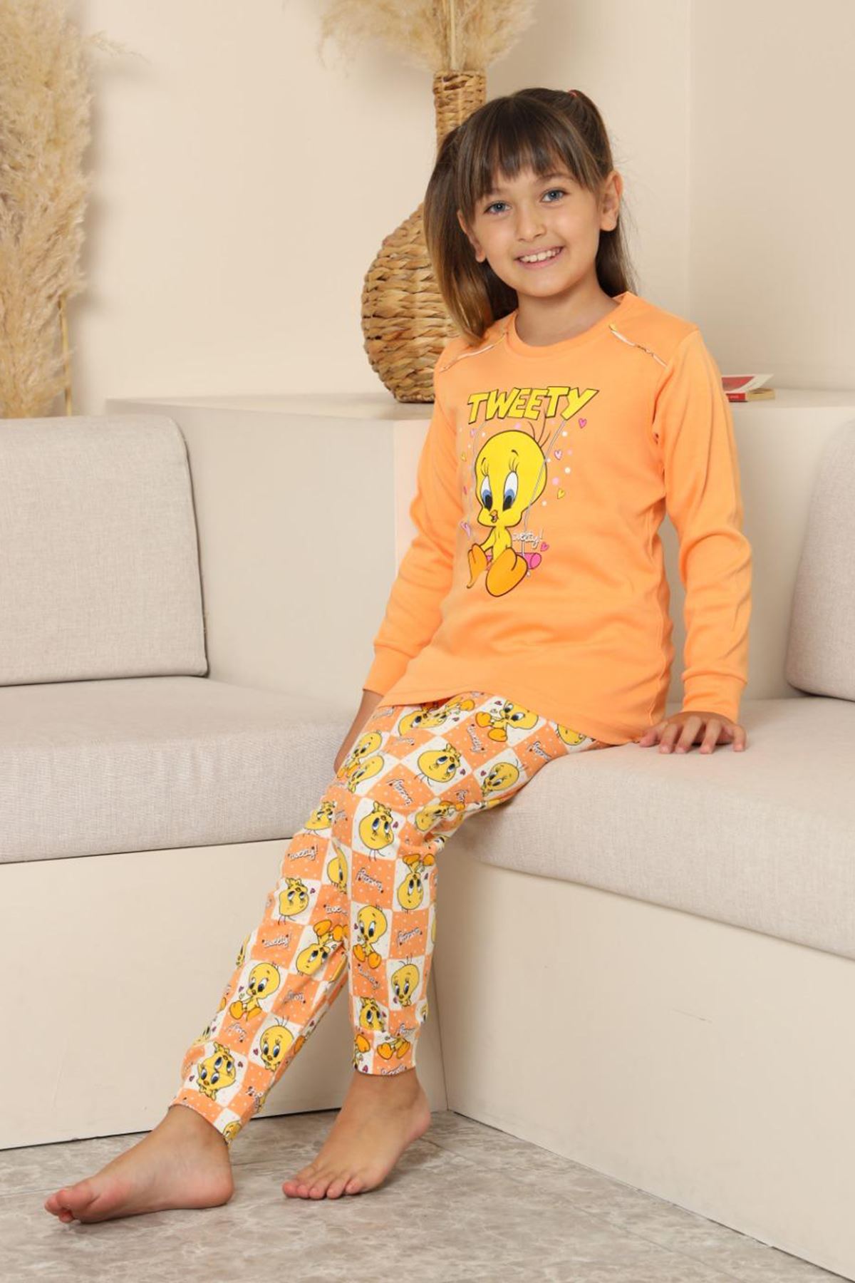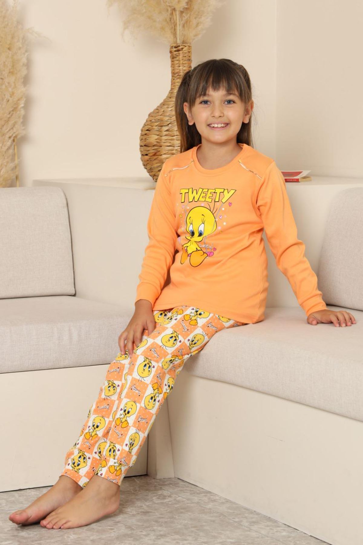 Miniğimin Cicileri Sevimli Civciv Baskılı Kız Çocuk Pijama Takımı - Turuncu