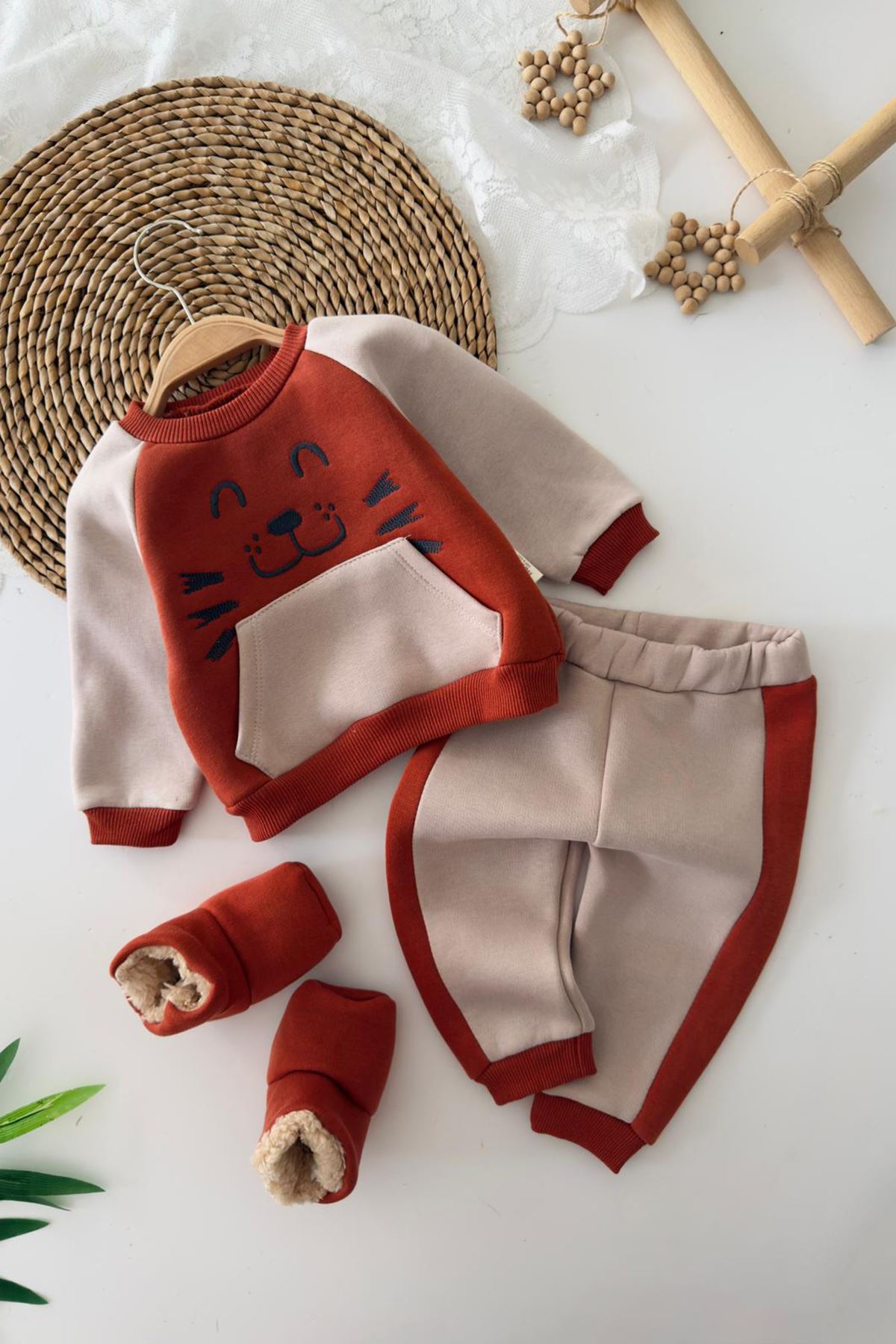 🔖 Miniğimin Cicileri Sevimli Surat İşleme Cepli Patikli Bebek 3’lü Kışlık Takım
