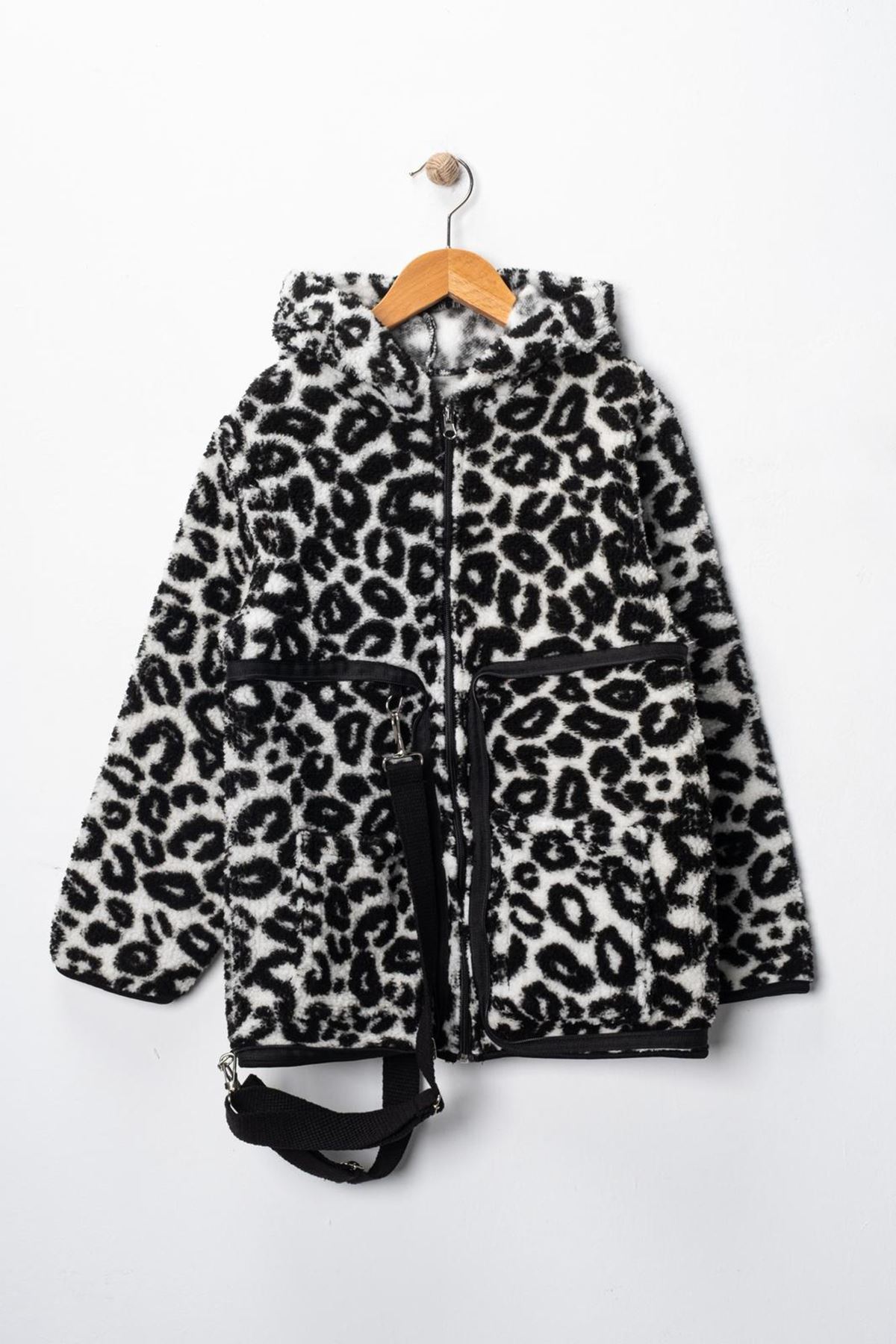 Miniğimin Cicileri Sırt Çantasına Dönüşebilen Peluş Unisex Çocuk  Mont - SiyahBeyaz