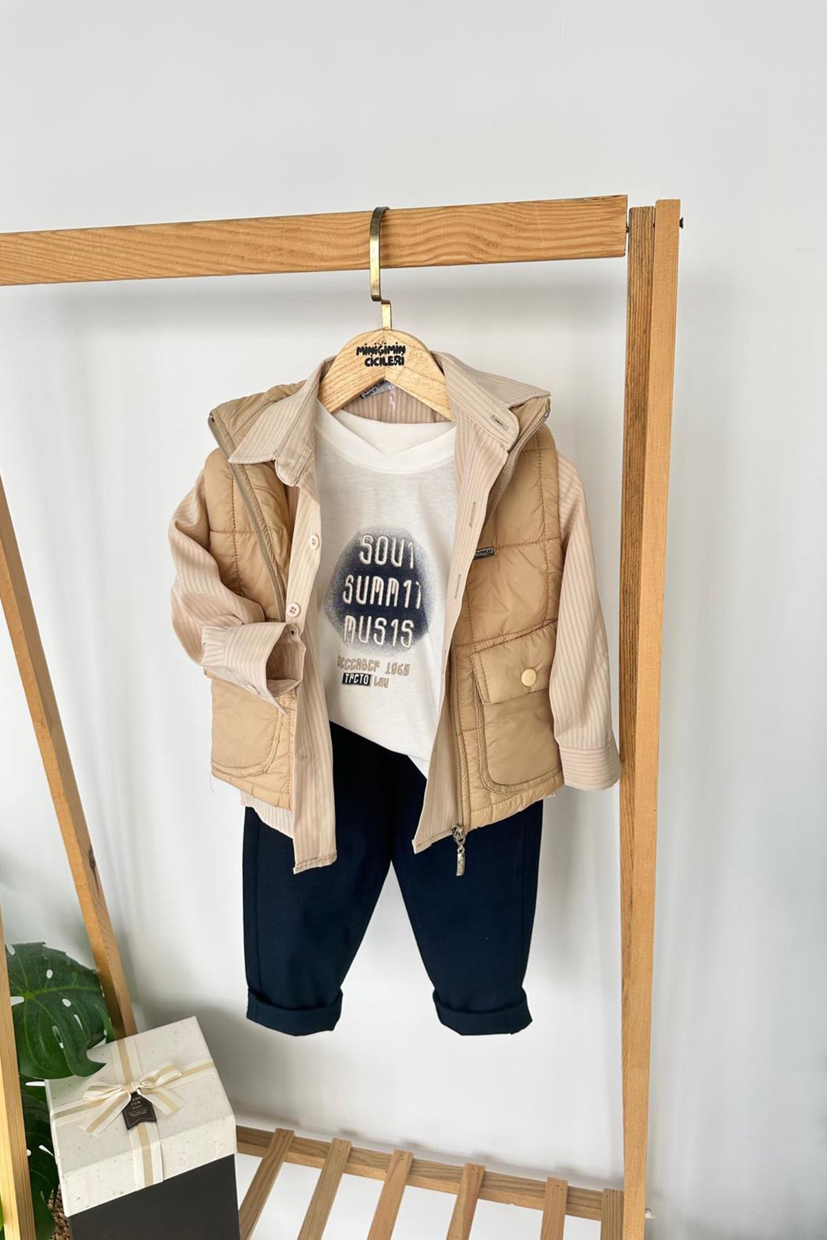 Miniğimin Cicileri Şişme Yelekli Erkek Çocuk Gömlekli 4 lü Takım - Bej