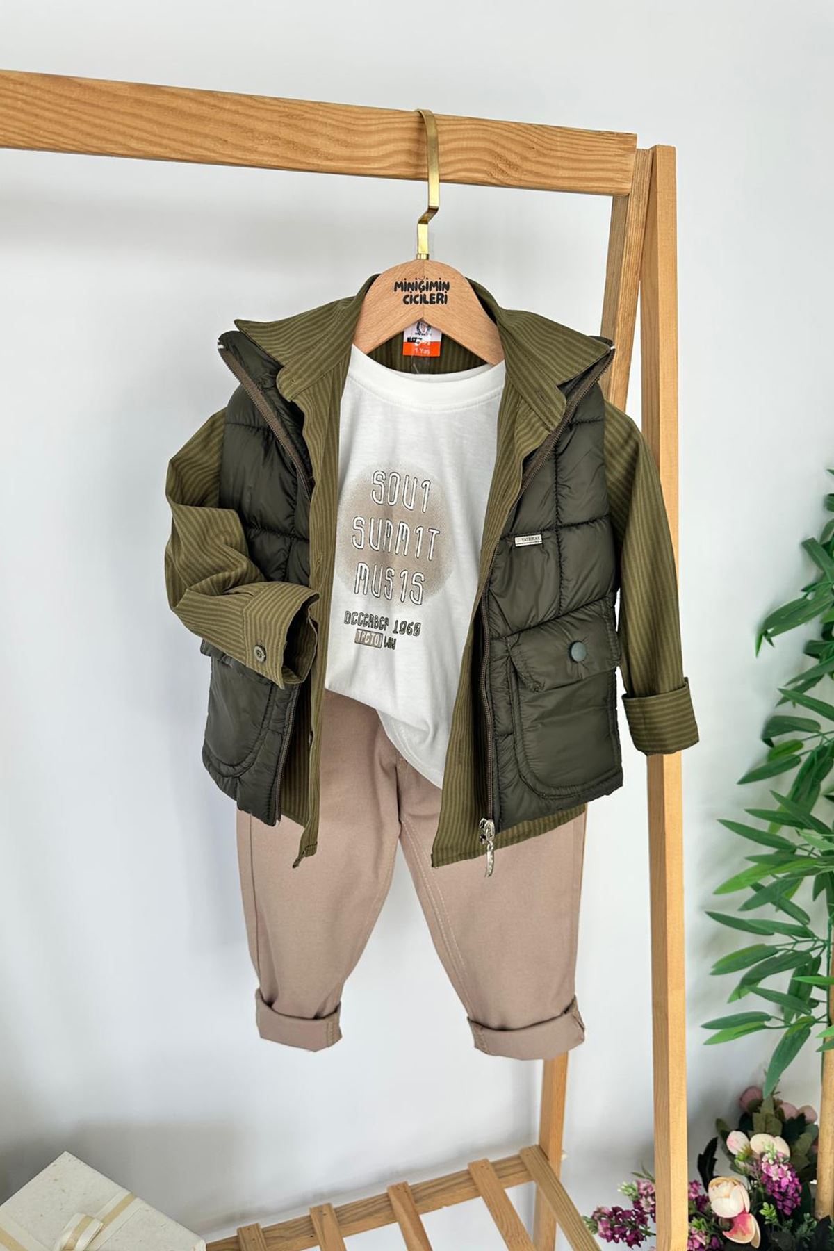 Miniğimin Cicileri Şişme Yelekli Erkek Çocuk Gömlekli 4 lü Takım - Haki