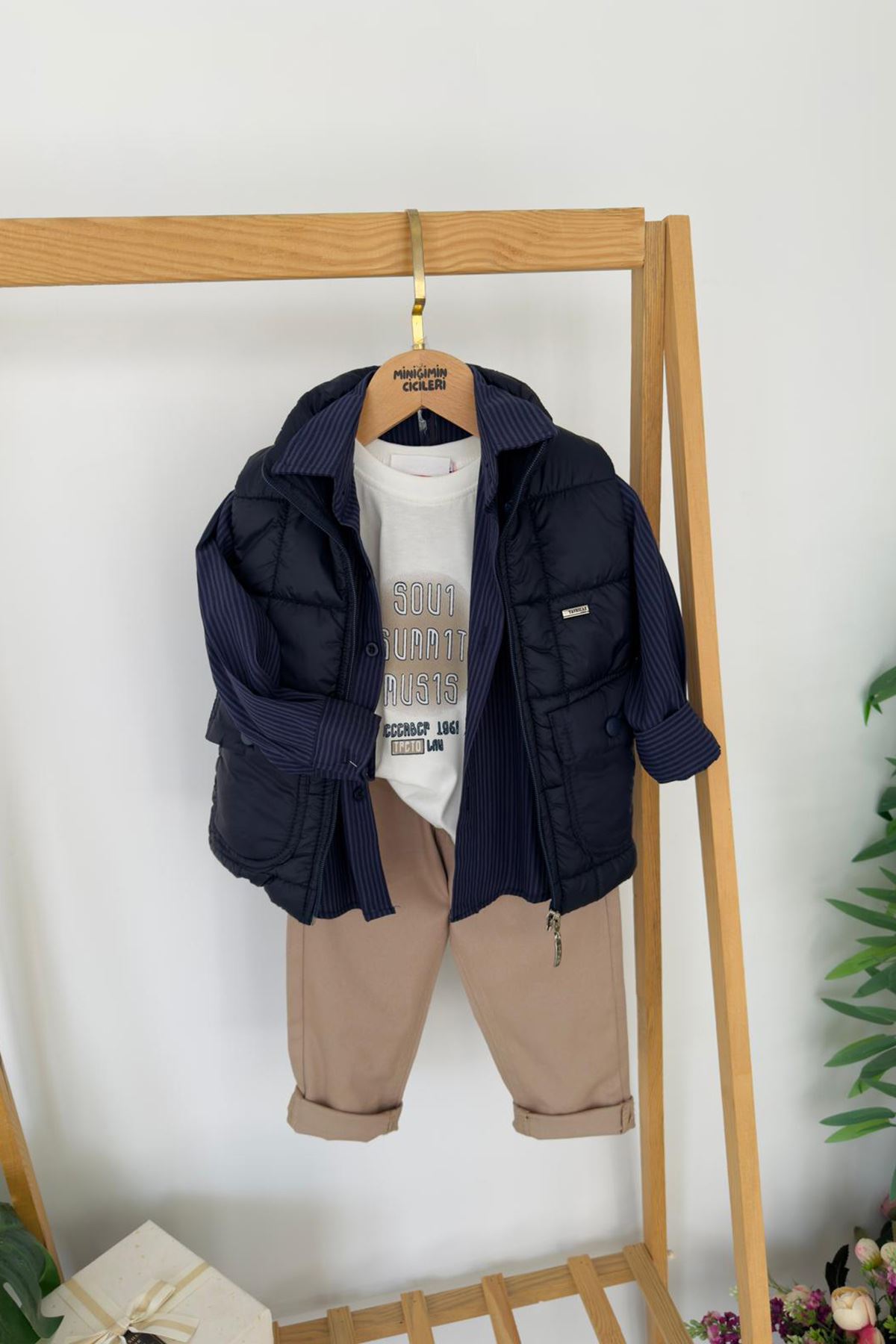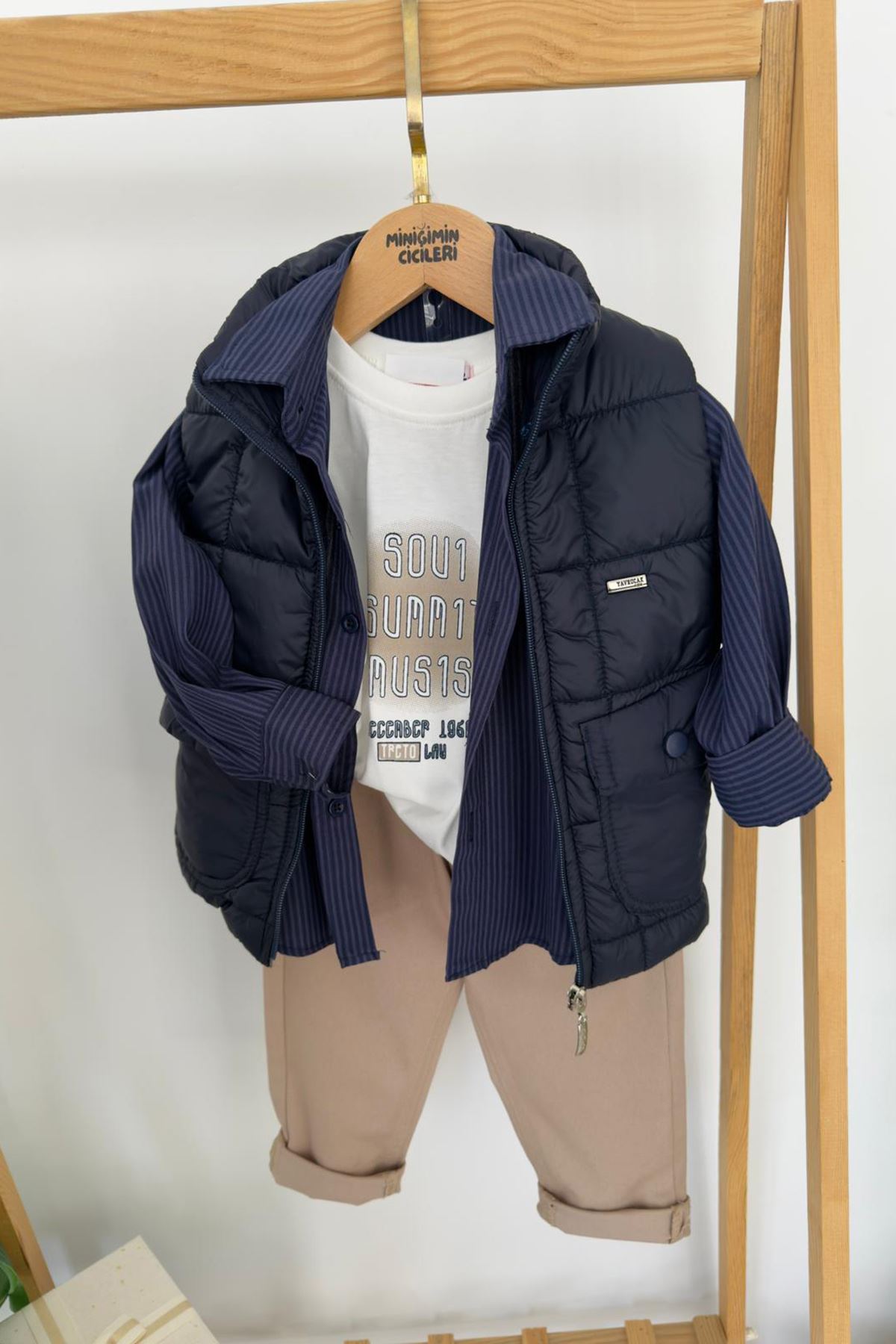 Miniğimin Cicileri Şişme Yelekli Erkek Çocuk Gömlekli 4 lü Takım - Lacivert