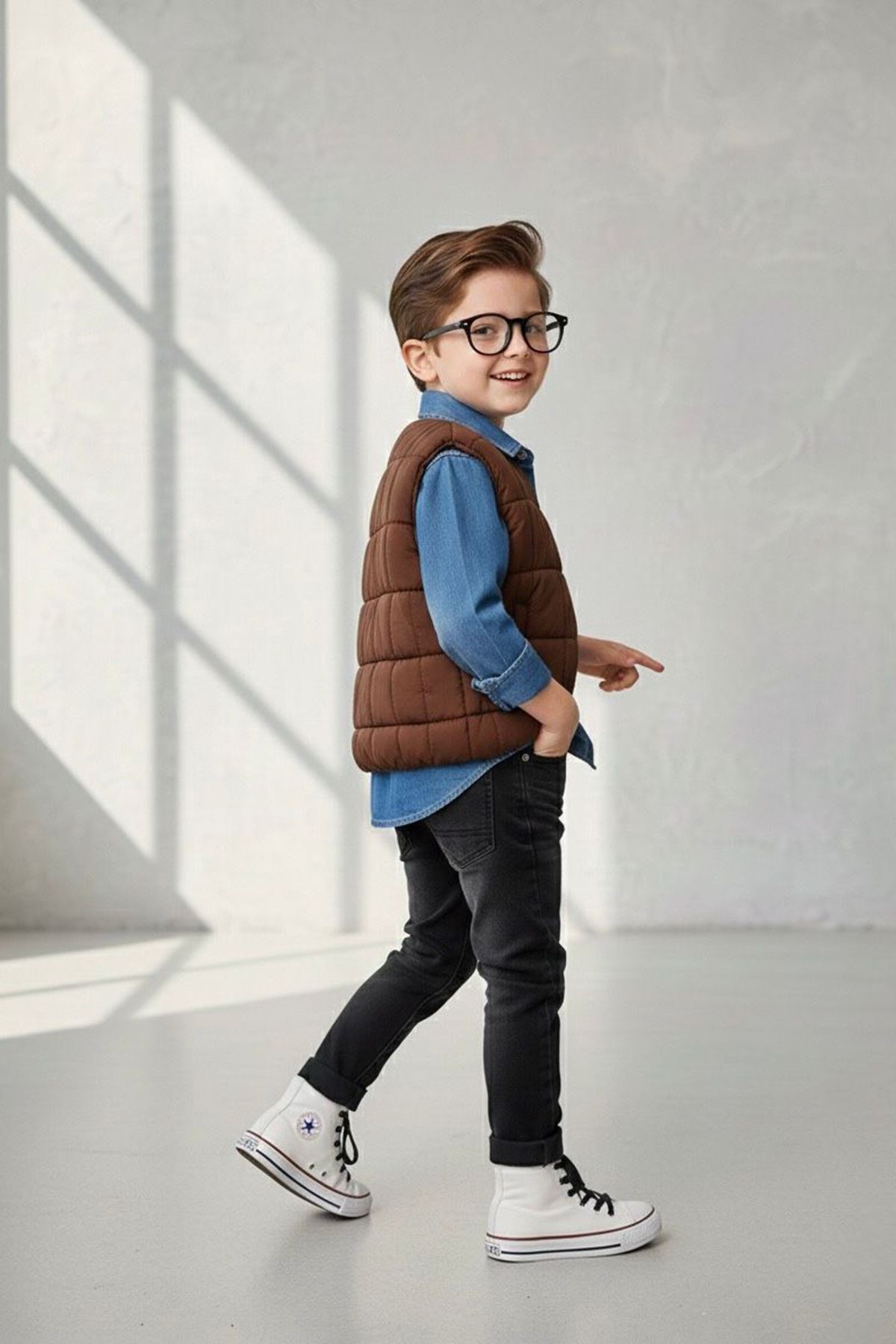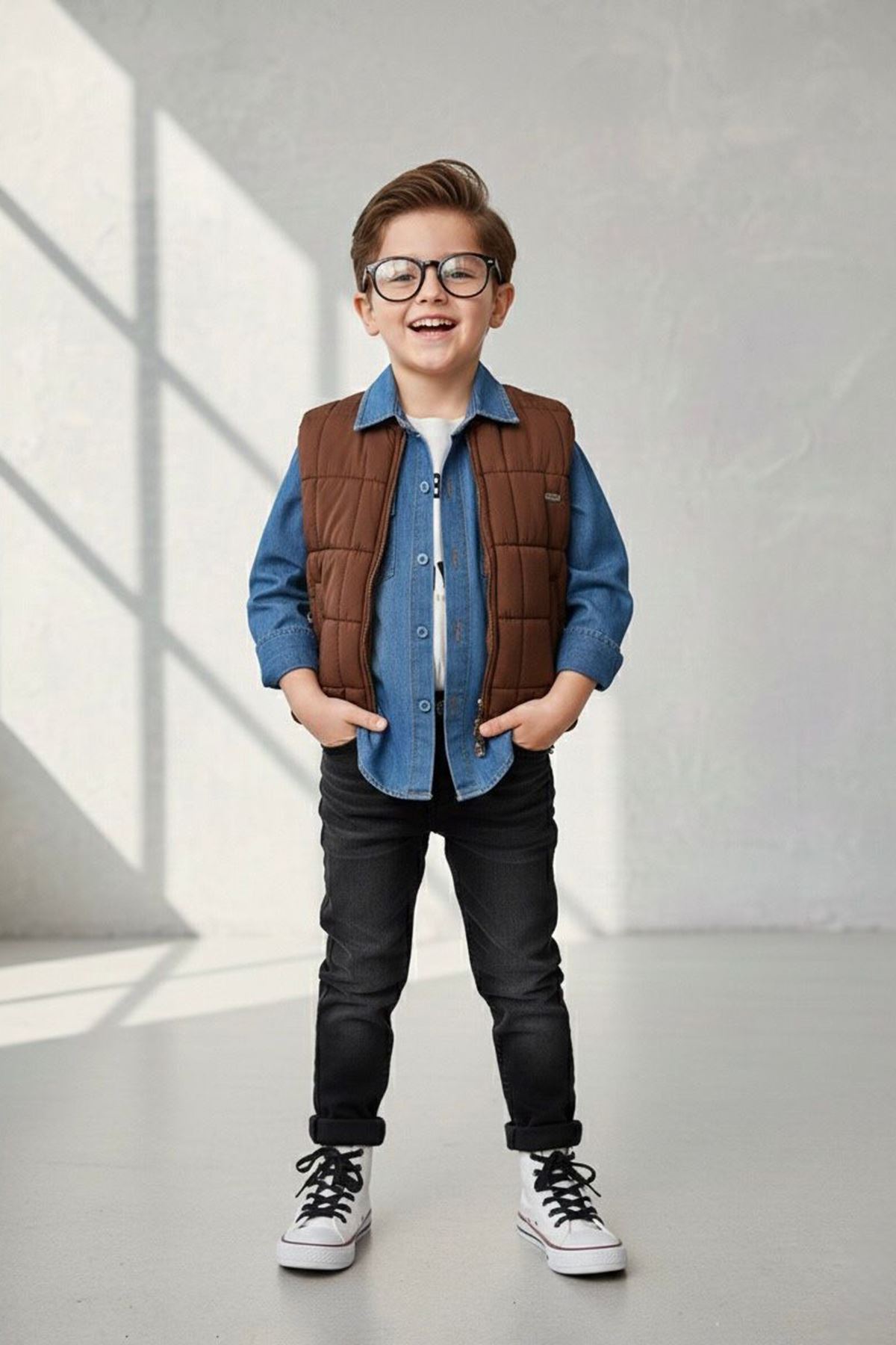 🧒 Miniğimin Cicileri Şişme Yelekli Tencel Gömlekli Erkek Çocuk 4’lü Kombin