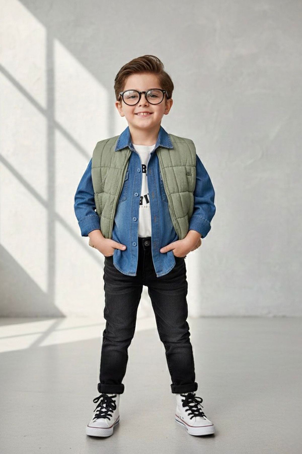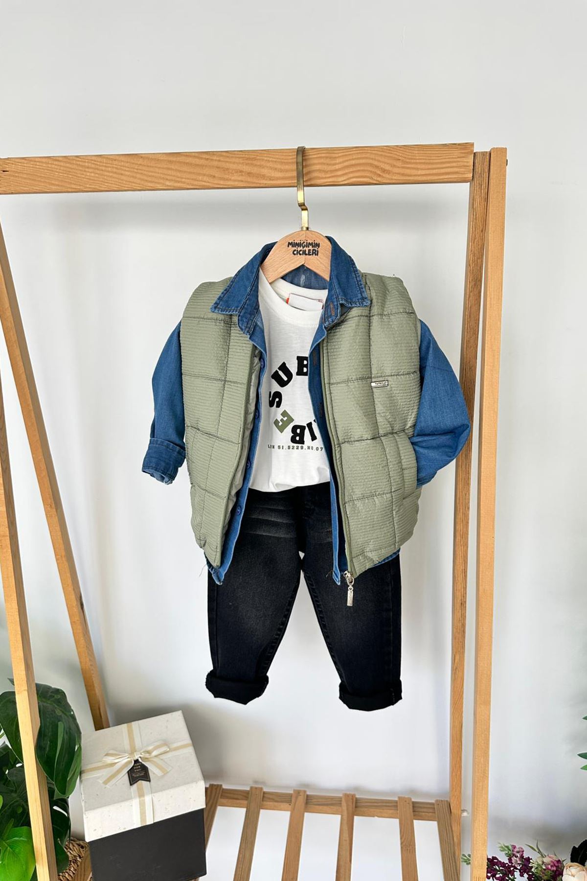 🧒 Miniğimin Cicileri Şişme Yelekli Tencel Gömlekli Erkek Çocuk 4’lü Kombin