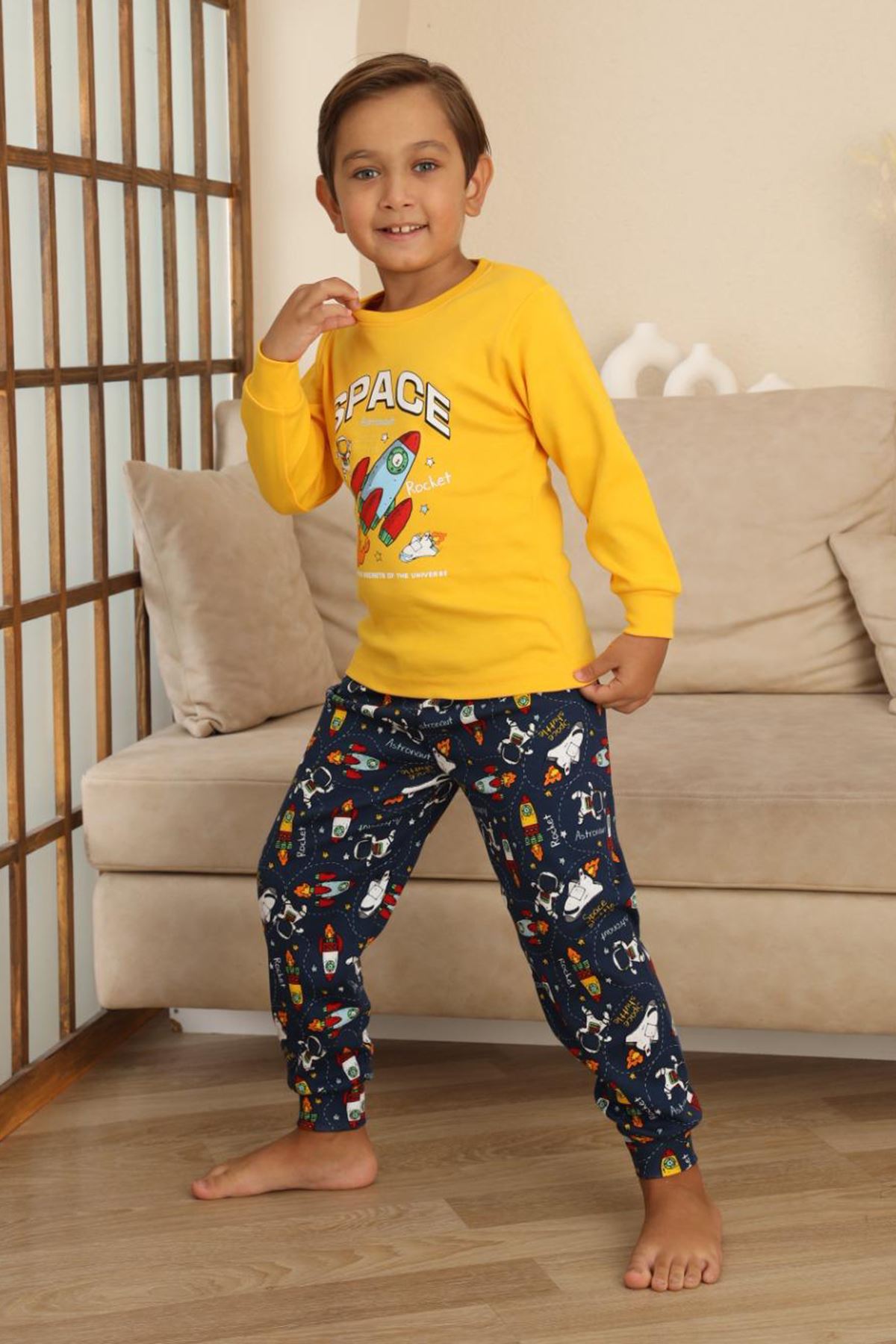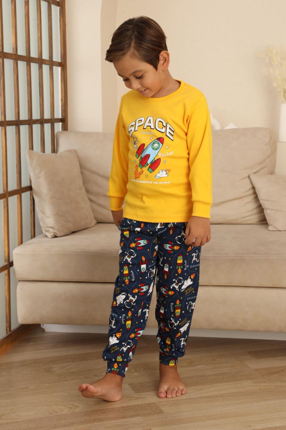 Miniğimin Cicileri Space Baskılı Erkek Çocuk Pijama Takımı - Sarı