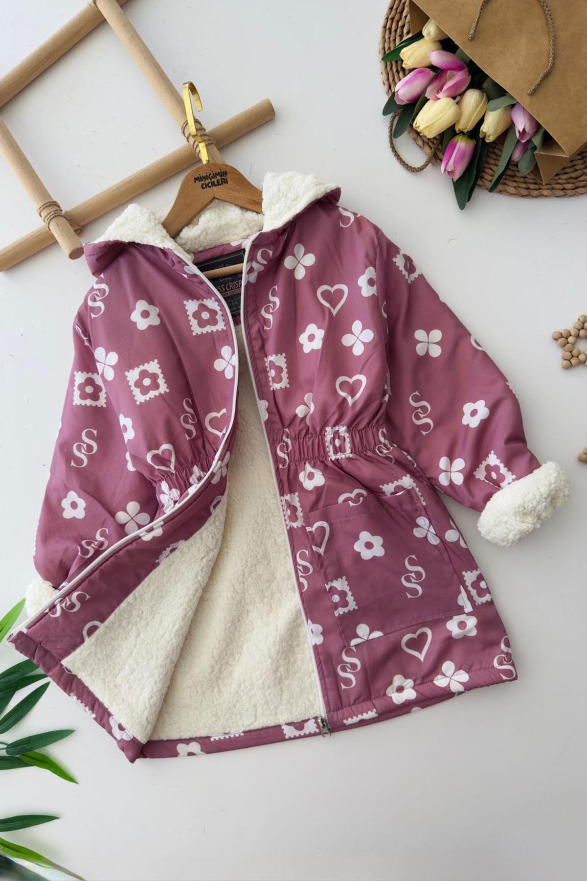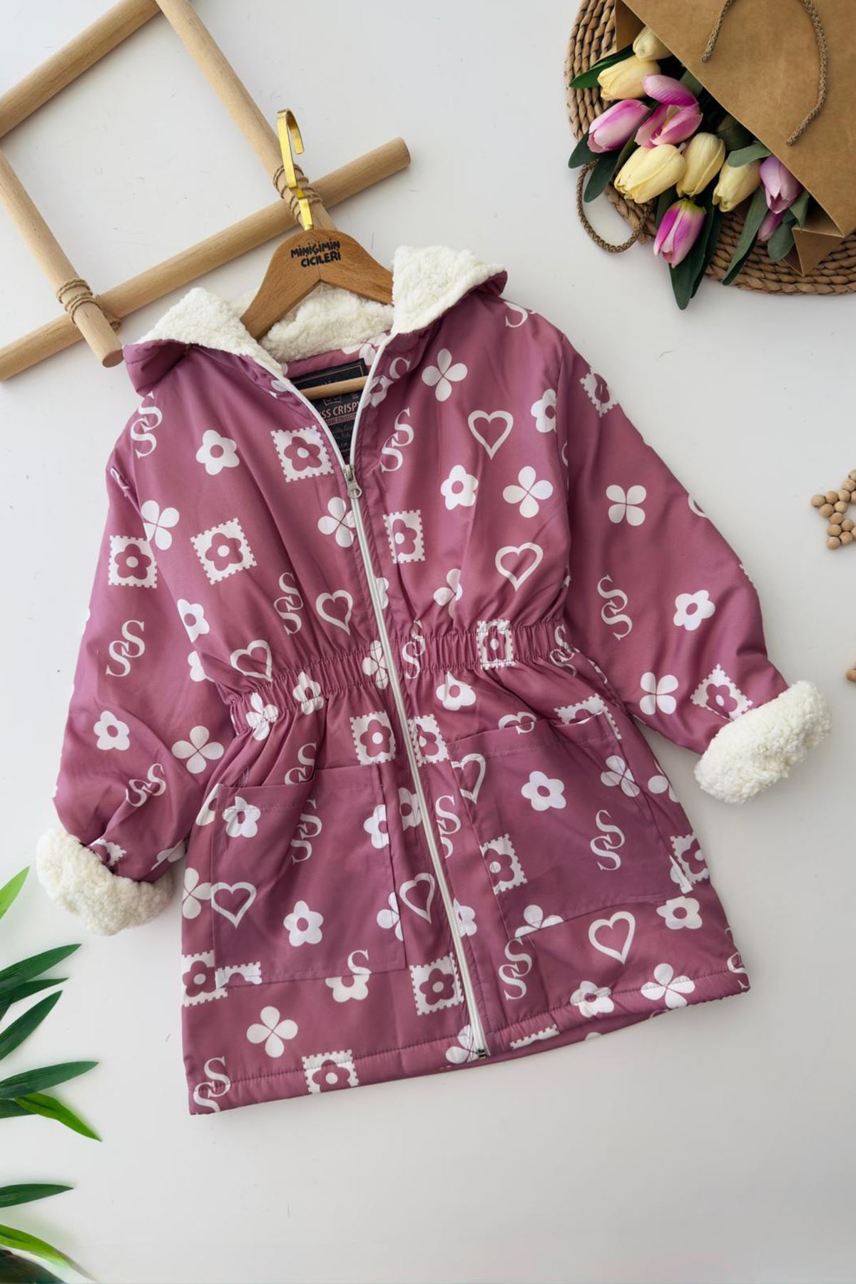 ✨ Ürün Özellikleri: ✔️ Şirin papatya ve kalp desenli tasarım ✔️ Tam fermuarlı ve kapüşonlu kullanım kolaylığı ✔️ Kürklü iç astar ile soğuk havalara karşı koruma ✔️ Bel kısmındaki lastik detay ile daha iyi oturuş ✔️ Günlük kullanım ve okul kombinleri için ideal