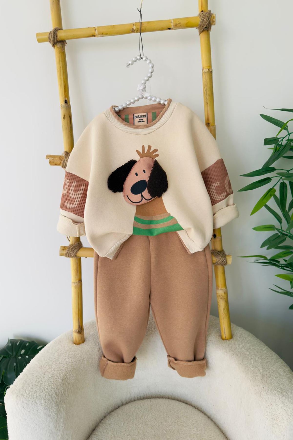 🌸 Stay Cool Köpek Desenli Erkek Bebek Kışlık Takım – 3 İp Şardonlu Kumaş