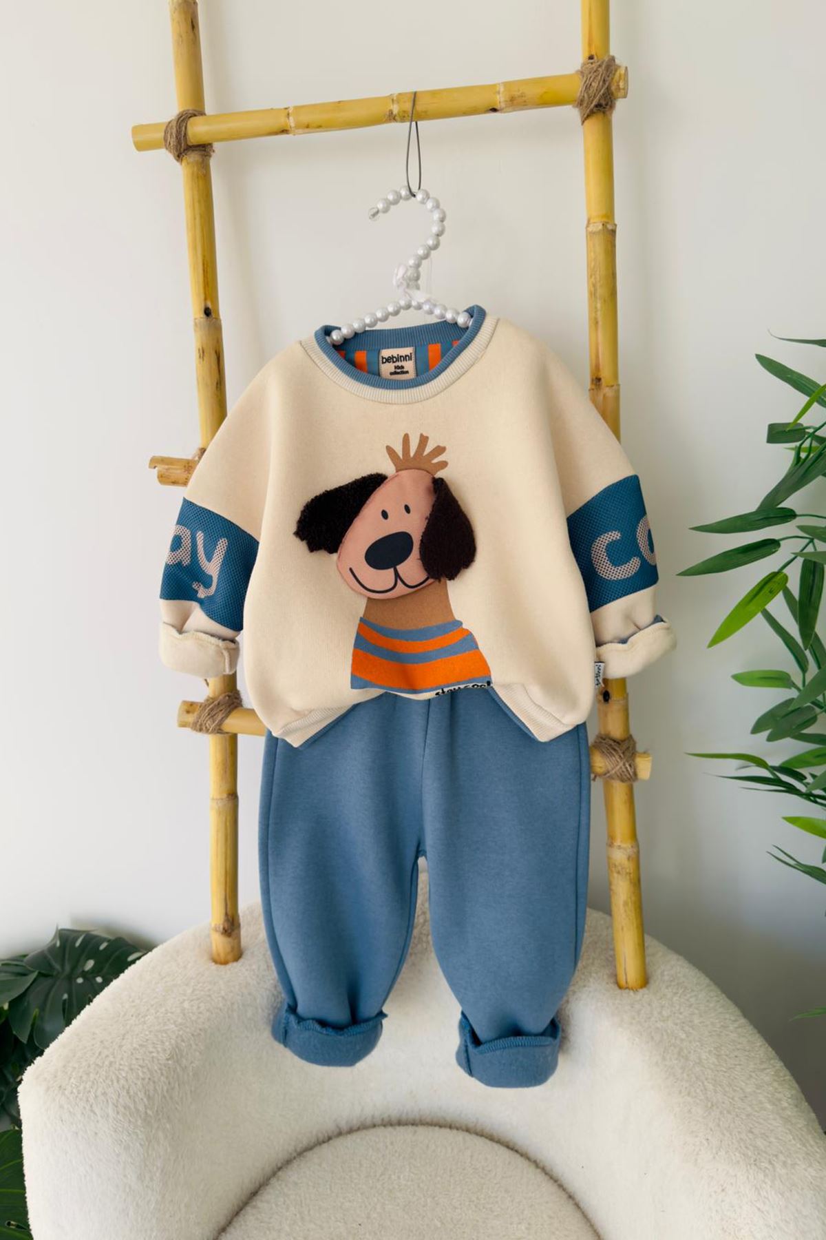 Sıcak tutan kumaşı, sevimli köpek detayı ve rahat kalıbıyla bu takım, bebeğinizin hem konforlu hem de tatlı görünmesini sağlar. Kış aylarında sıcacık bir tarz için mükemmel tercih! 🐾💙