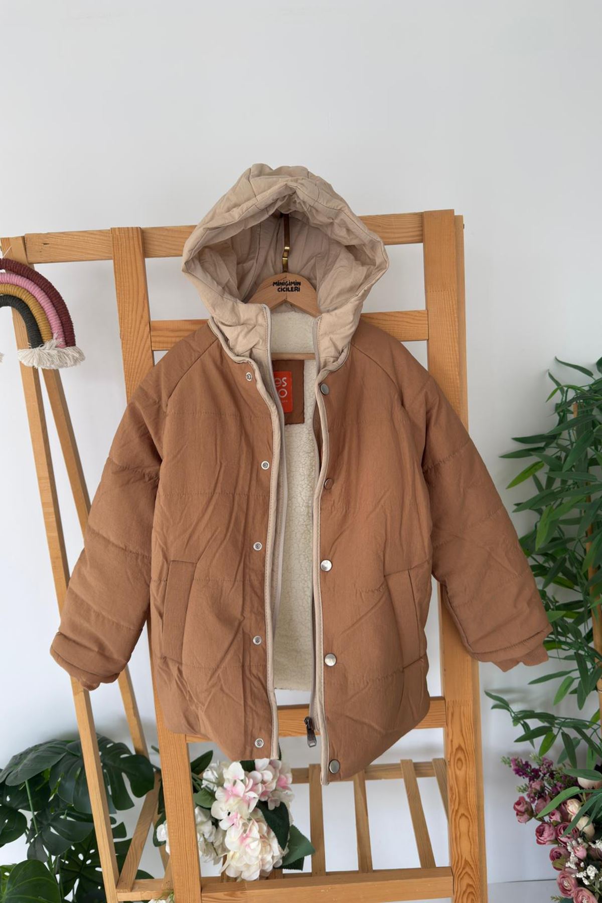 Miniğimin Cicileri Su Geçirmez Kapüşonlu Kışlık Erkek Çocuk Mont - Kahve