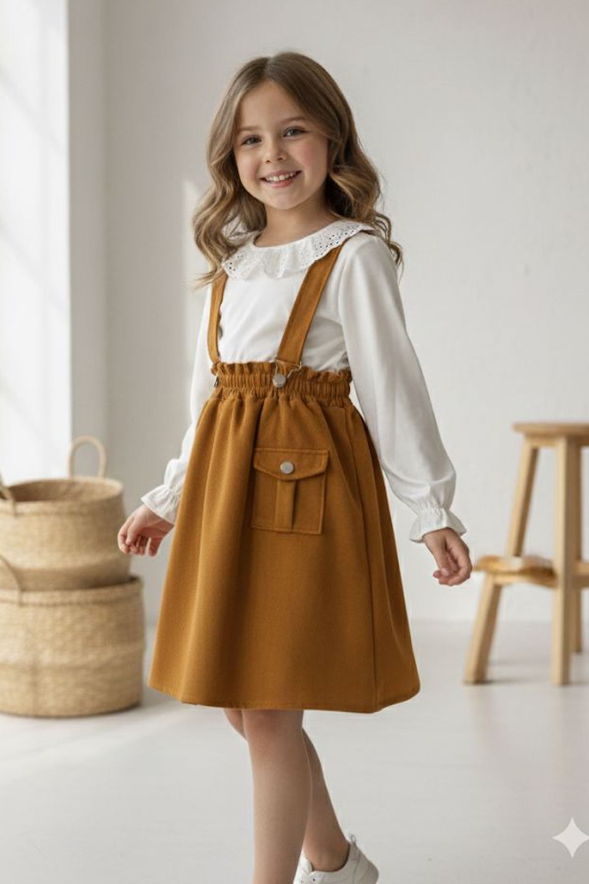 👗 Ürün Özellikleri: 🧵 Yumuşak süet dokulu etek, zarif ve konforlu bir kullanım sağlar. 👚 Uzun kollu bluzu, geniş yakasıyla romantik bir görünüm sunar. 🎀 Askılı etek modeli, cep detayıyla şıklığına pratiklik katar. 🌿 Esnek bel yapısı sayesinde hareket özgürlüğü sağlar. ✨ Günlük kullanım ve özel davetler için ideal bir kombin parçasıdır.