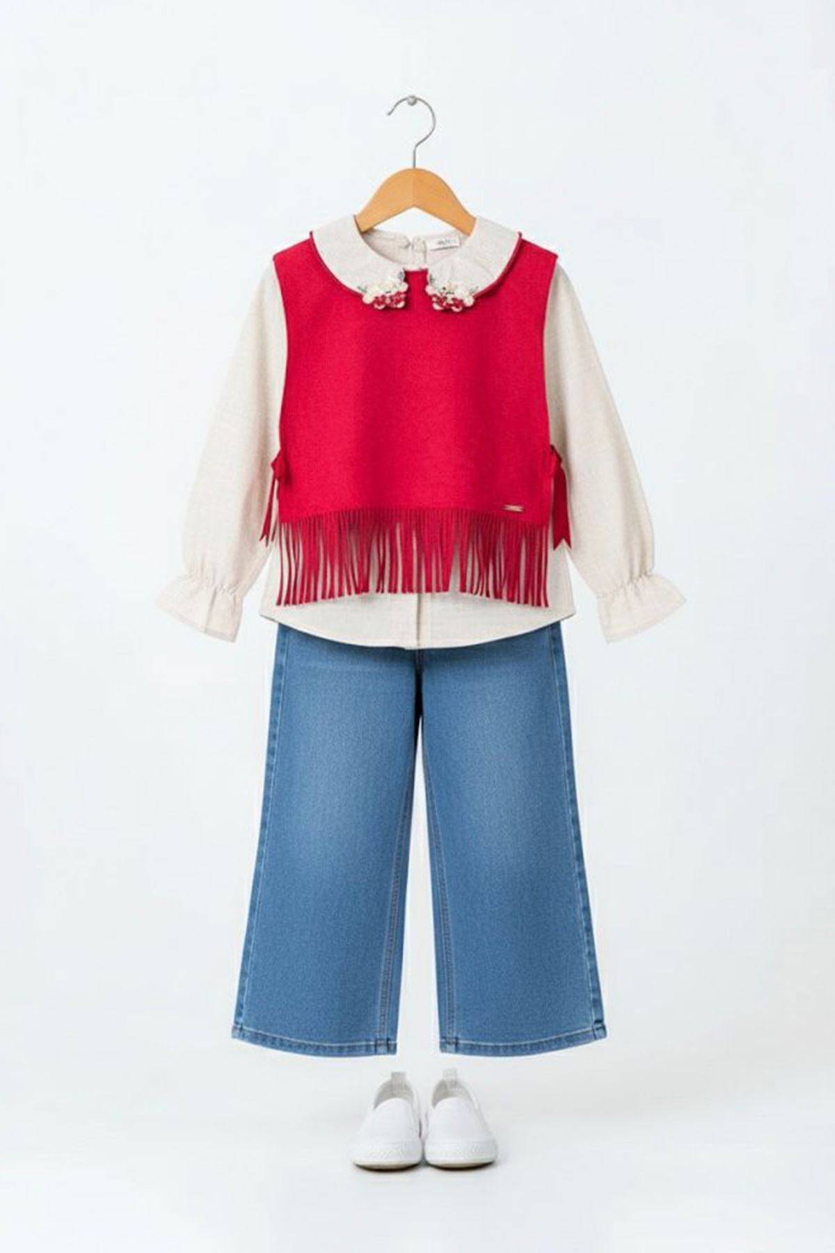 Miniğimin Cicileri Süet Püsküllü Kız Çocuk 3 lü Takım - Kırmızı