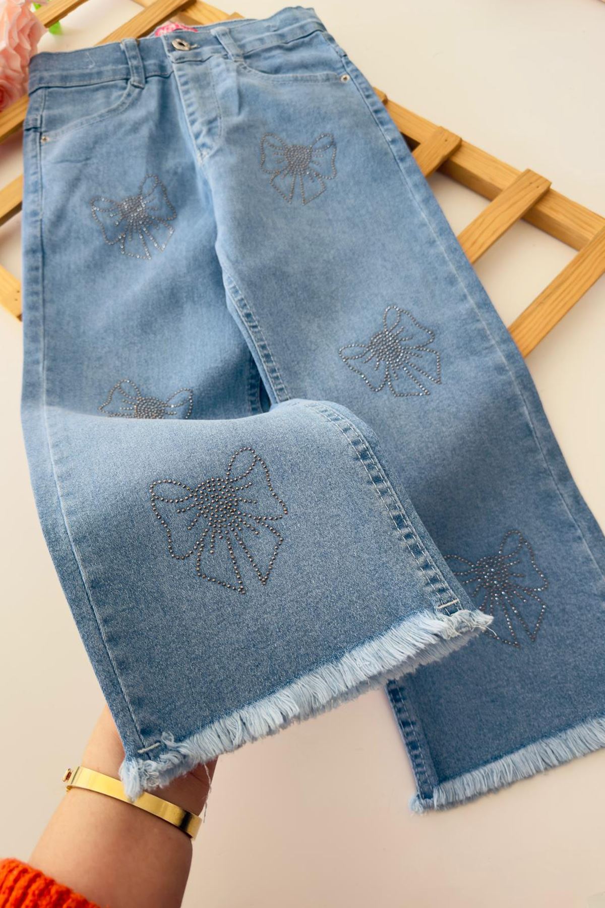 🎀 Miniğimin Cicileri Taş Fiyonk İşleme Detaylı Kız Çocuk Yumuşak Kot Pantolon
