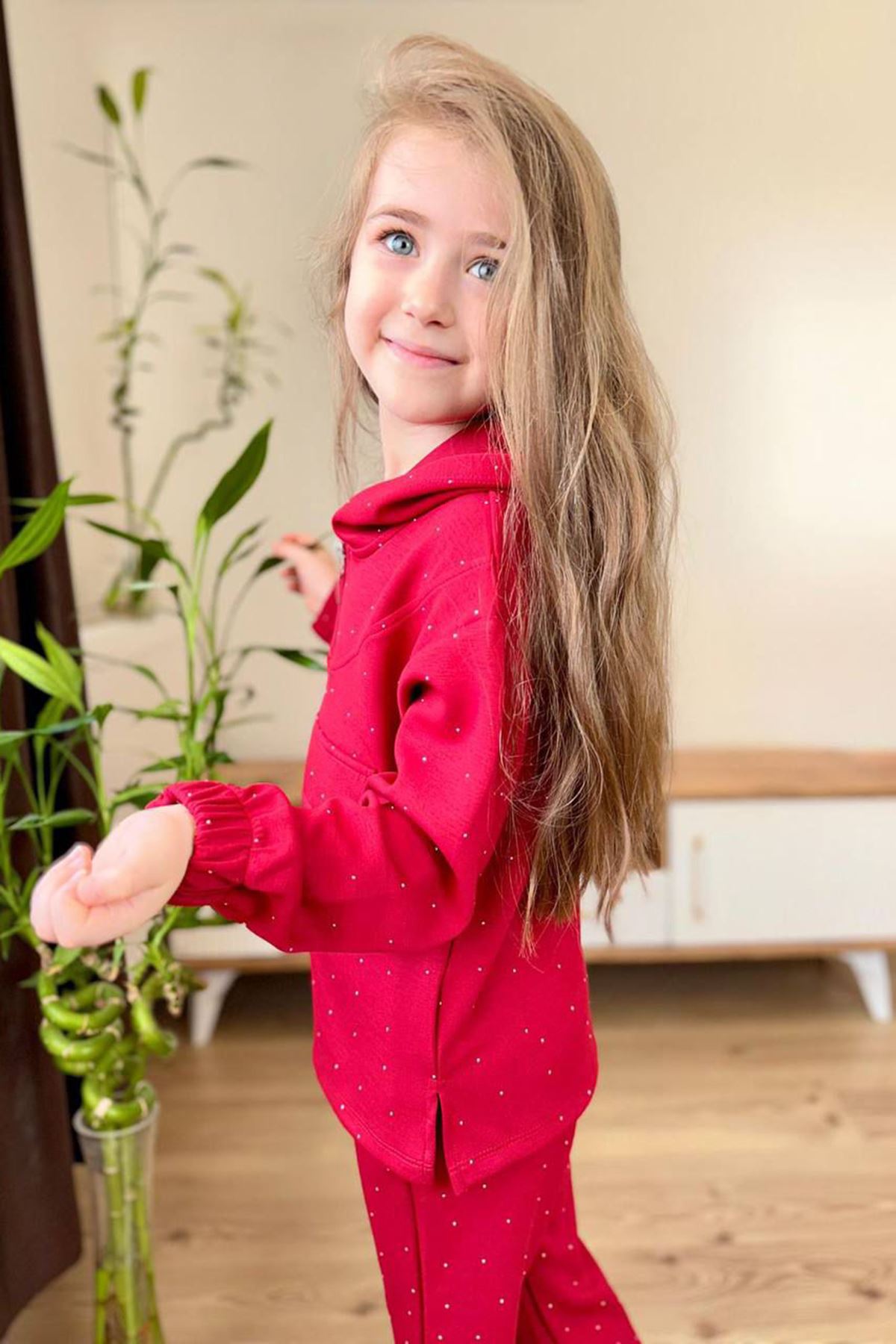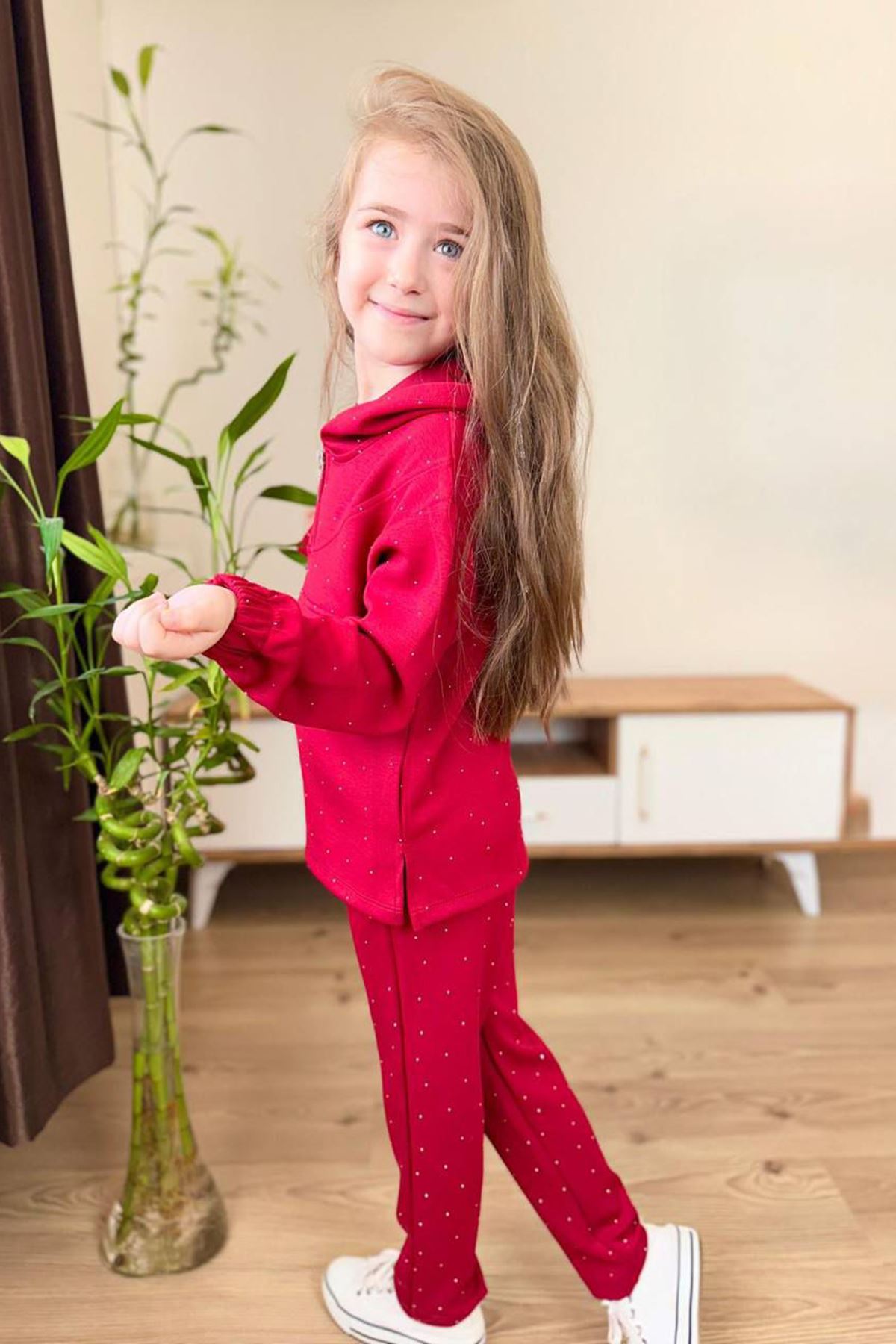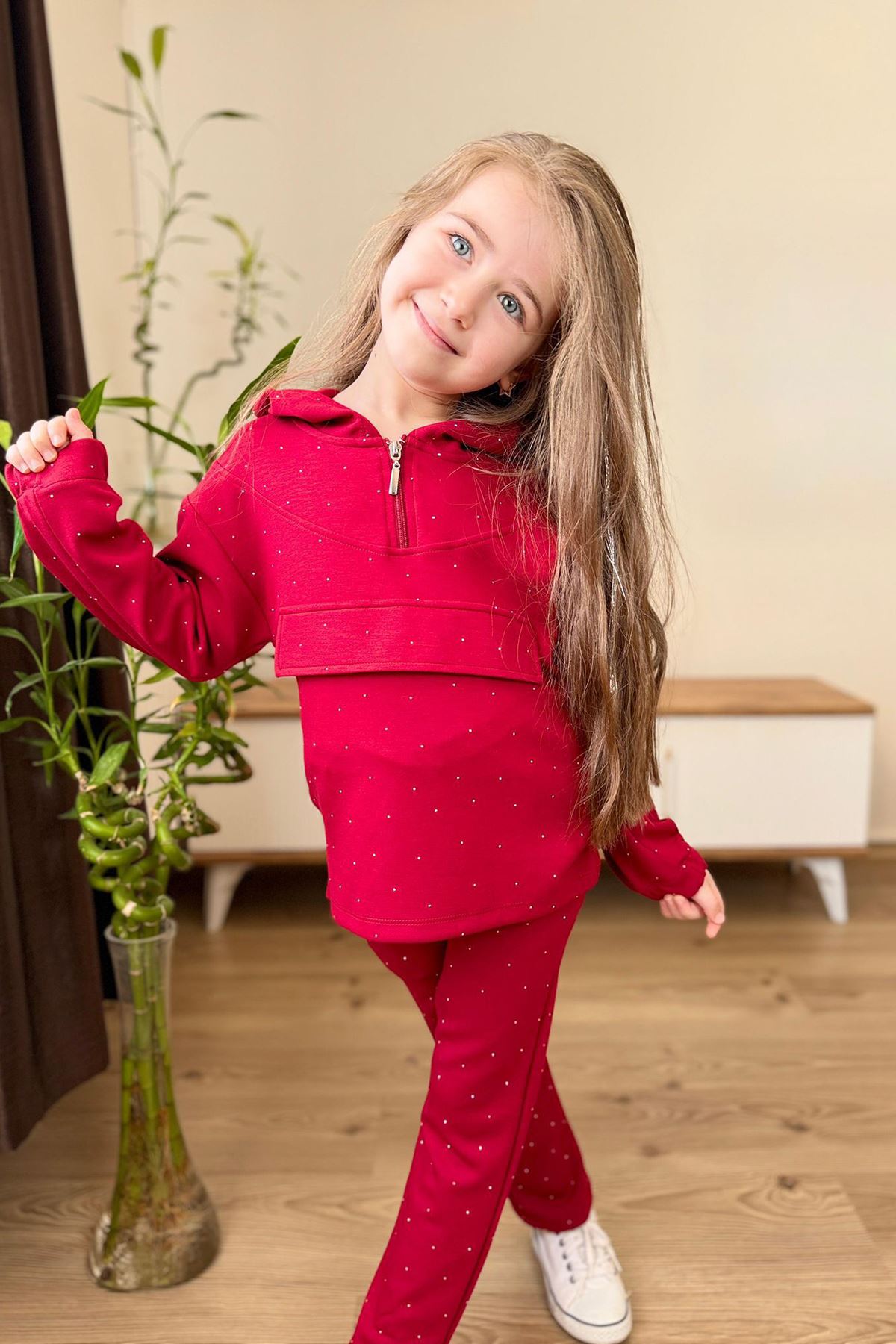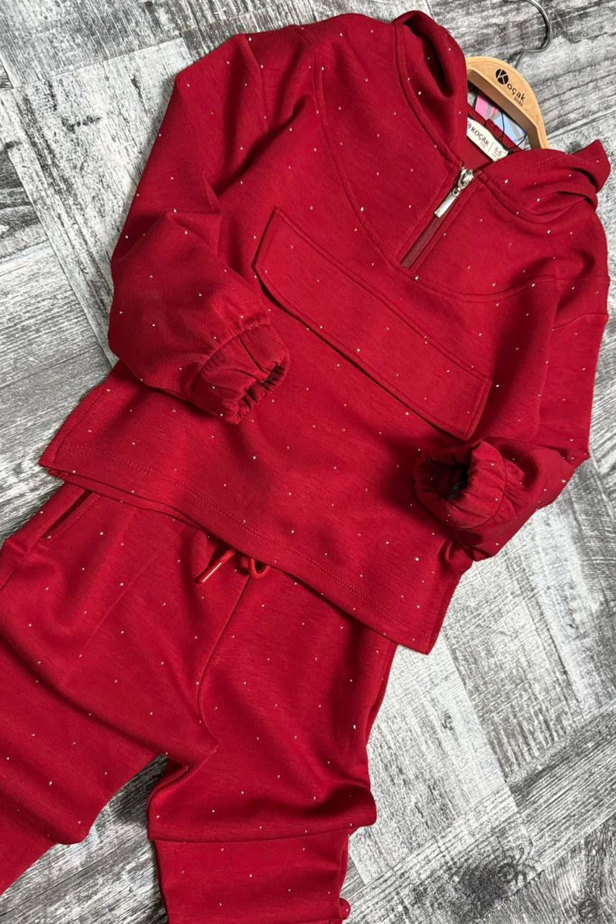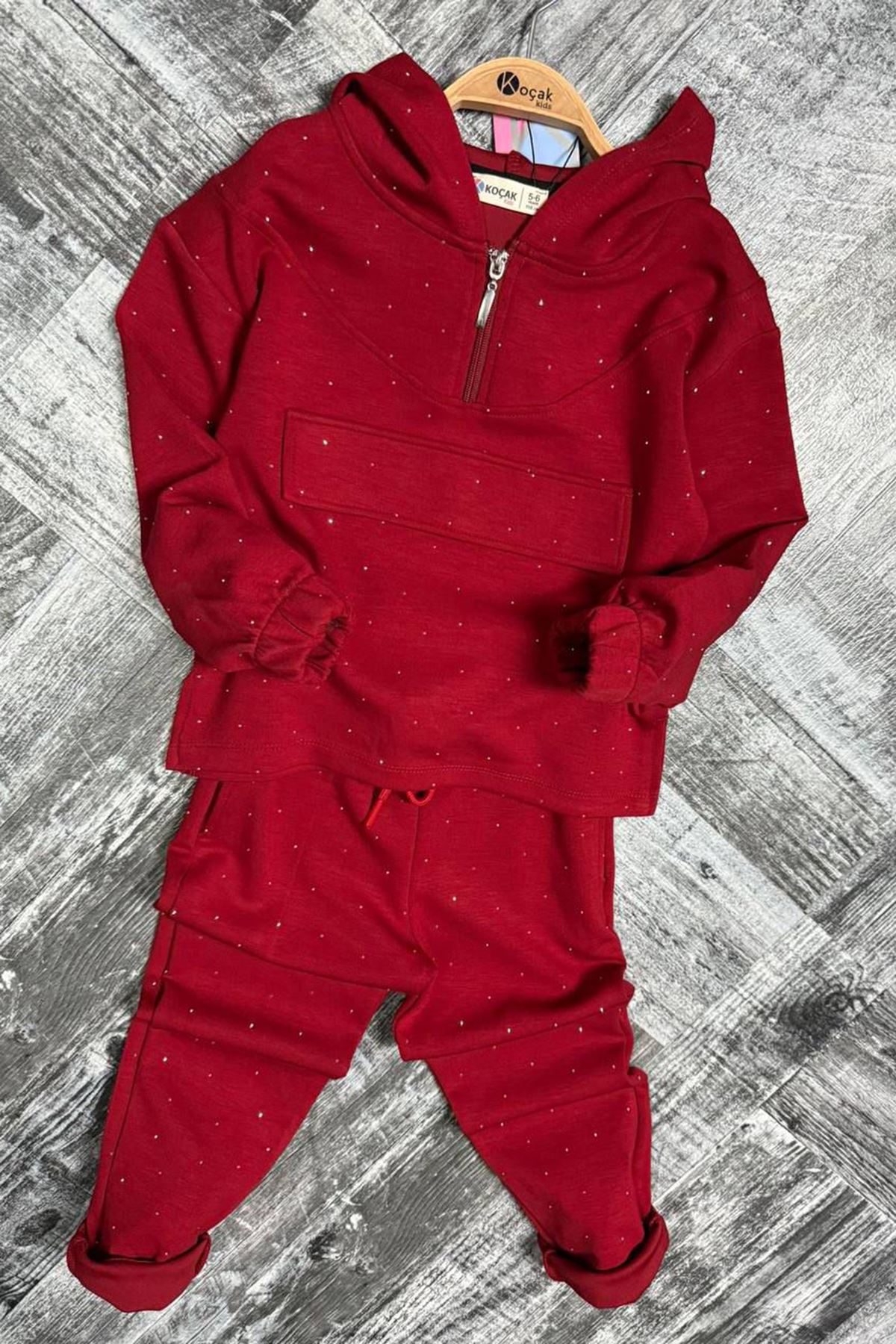 Miniğimin Cicileri Taş İşlemeli Kapüşonlu Kız Çocuk Takım - Kırmızı