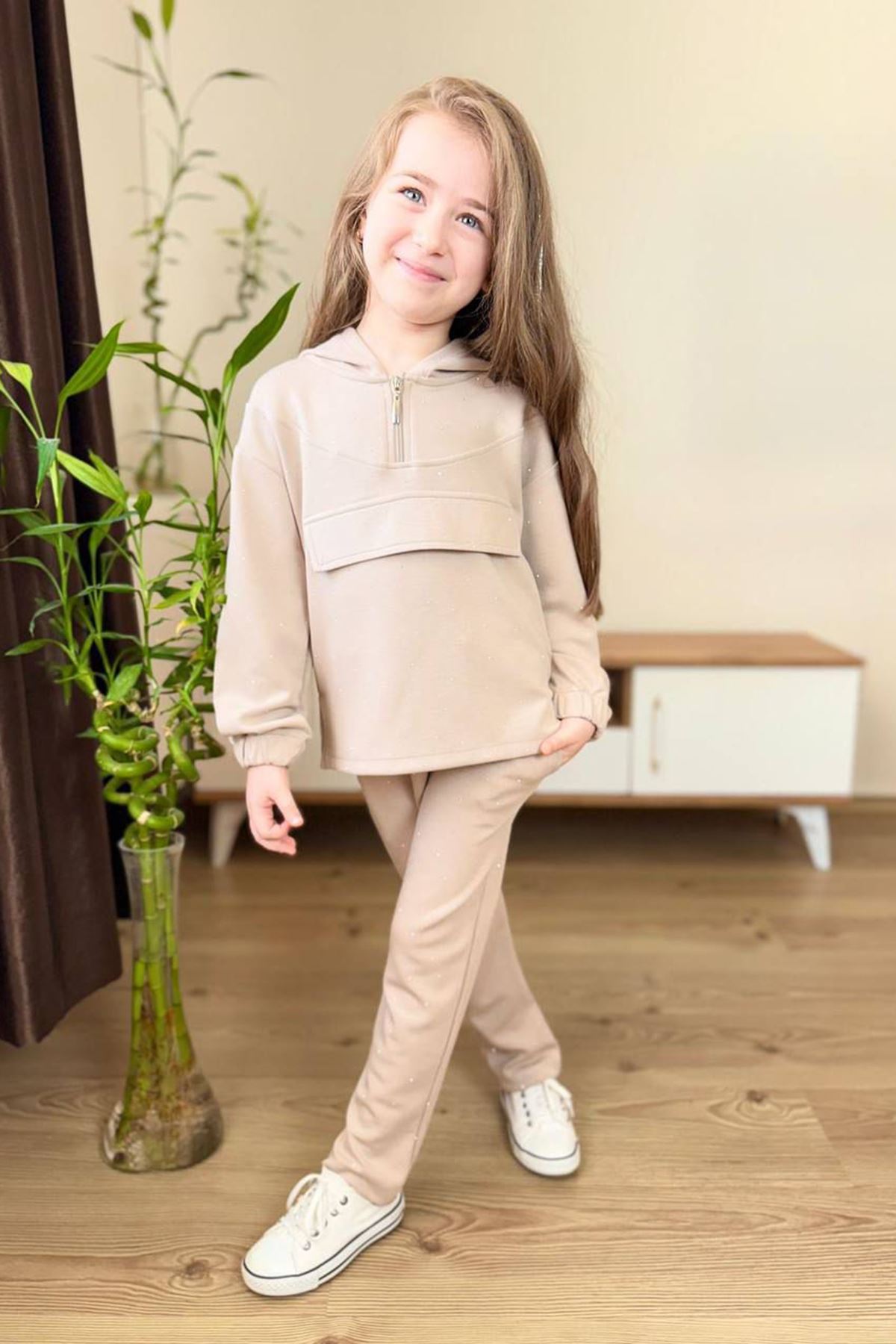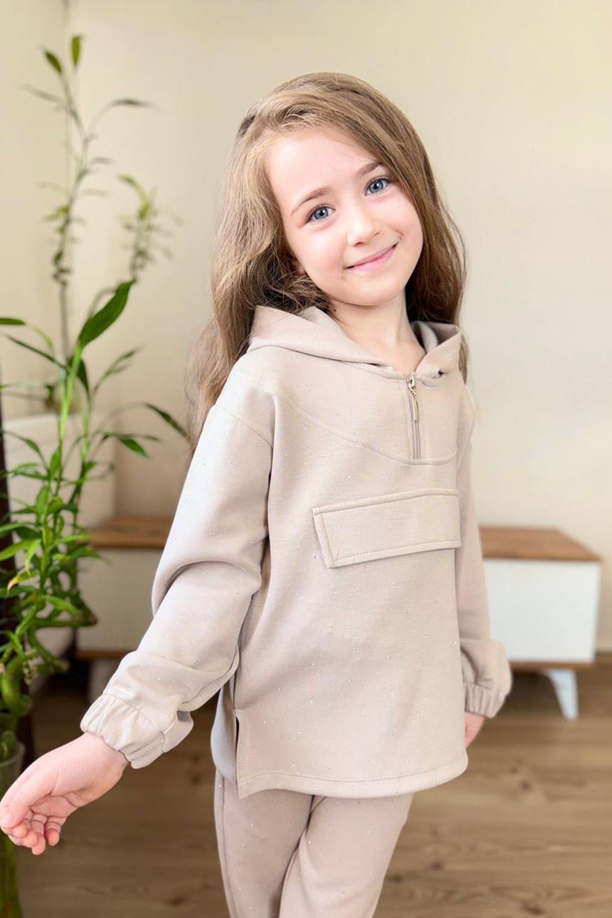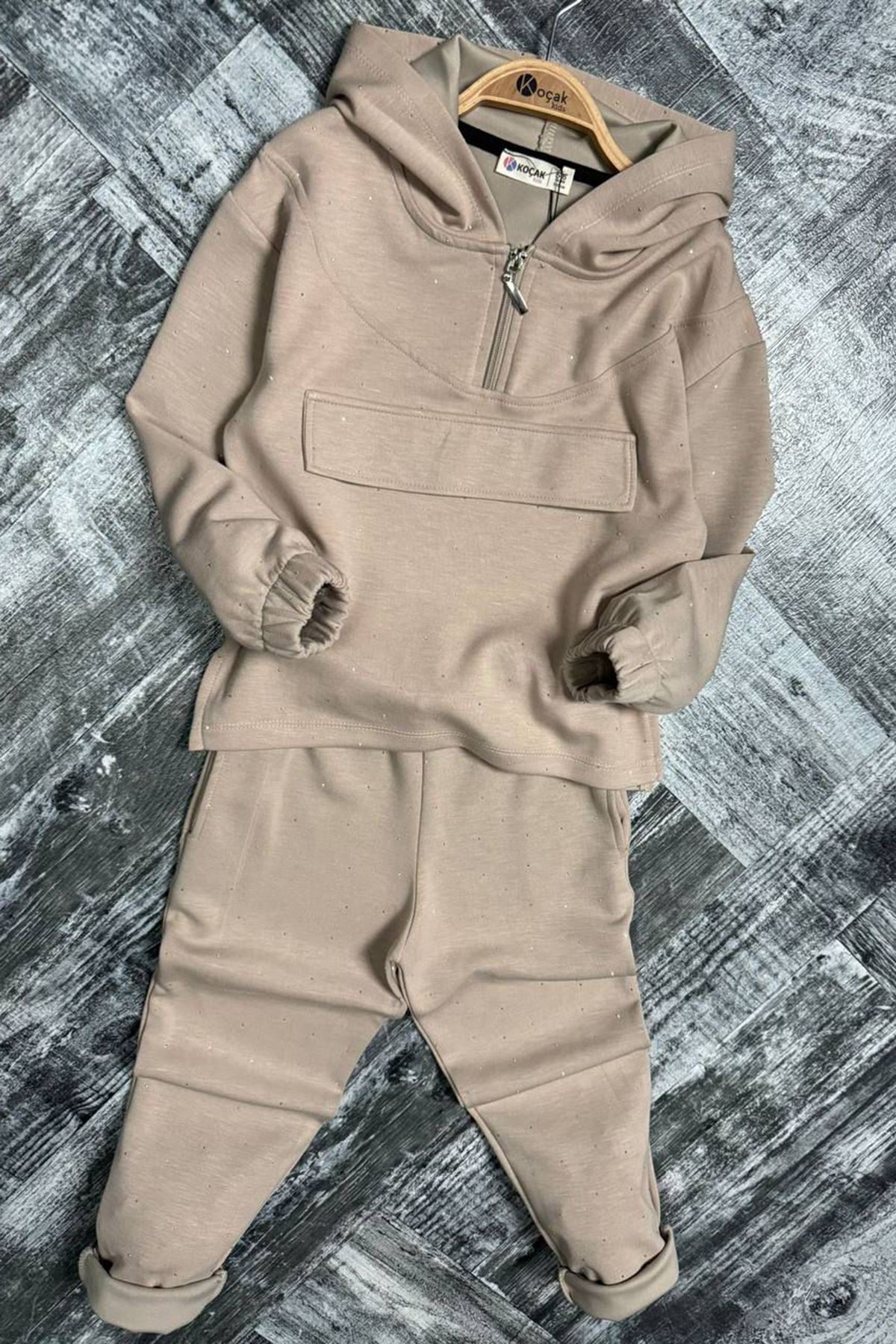 🌸 Miniğimin Cicileri Taş İşlemeli Kapüşonlu Kız Çocuk Takım